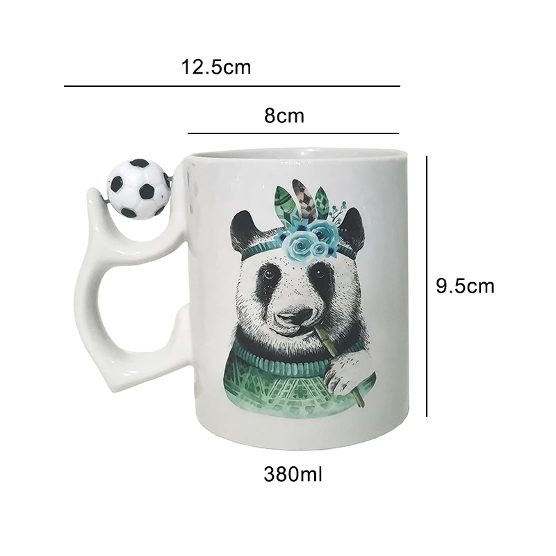 Кружка с рисунком милой панды и ложкой, новые стильные 3D футбольные кружки, чашка для кофе и молока, емкость 380 мл, чашка для воды