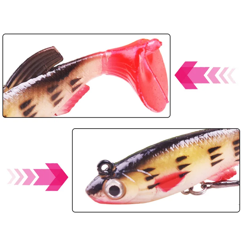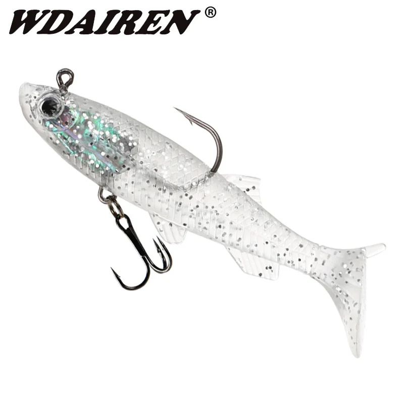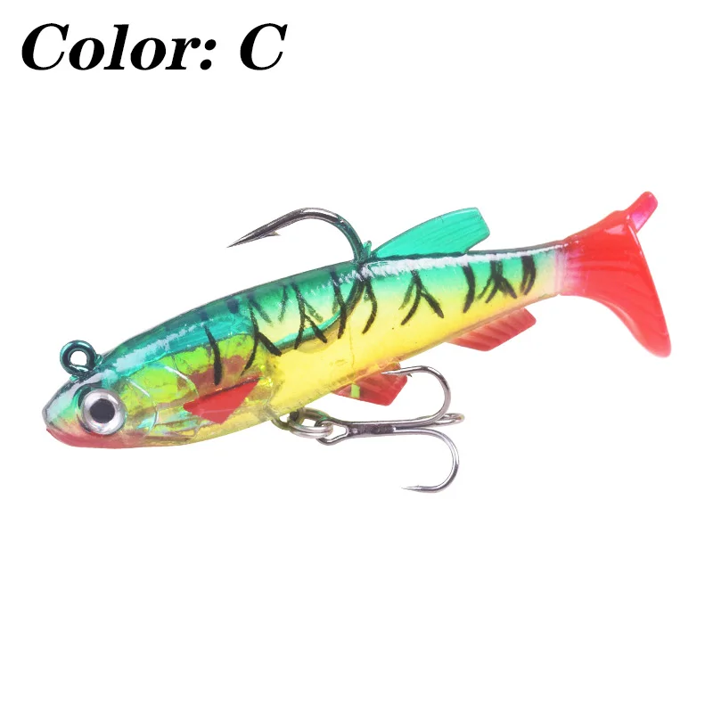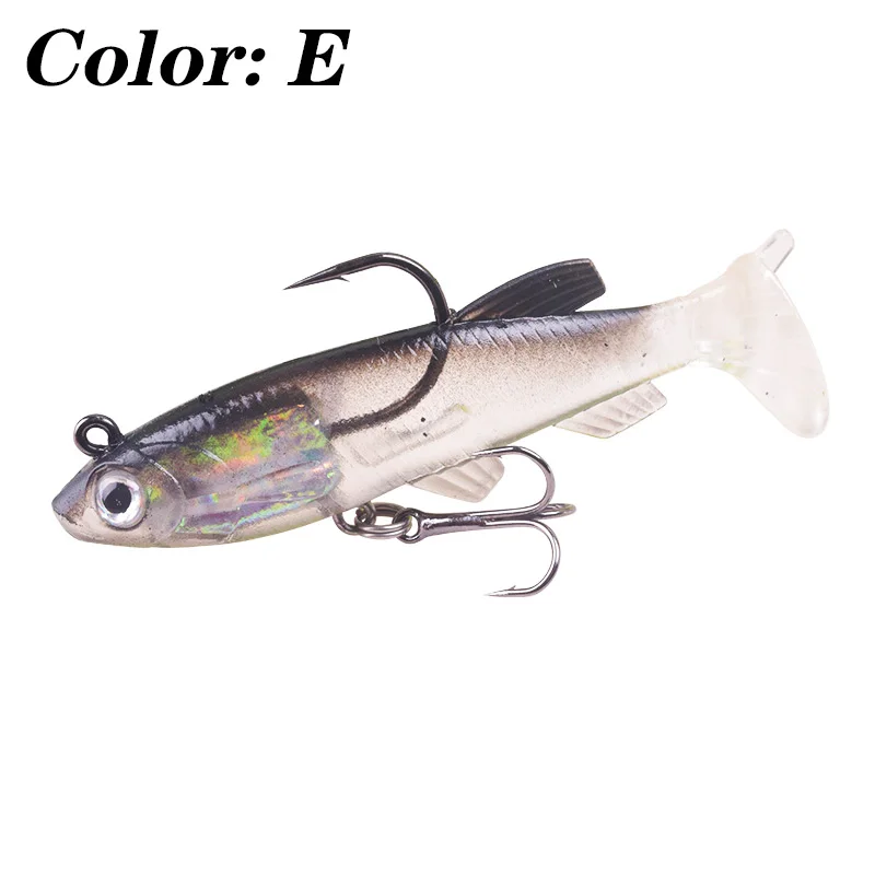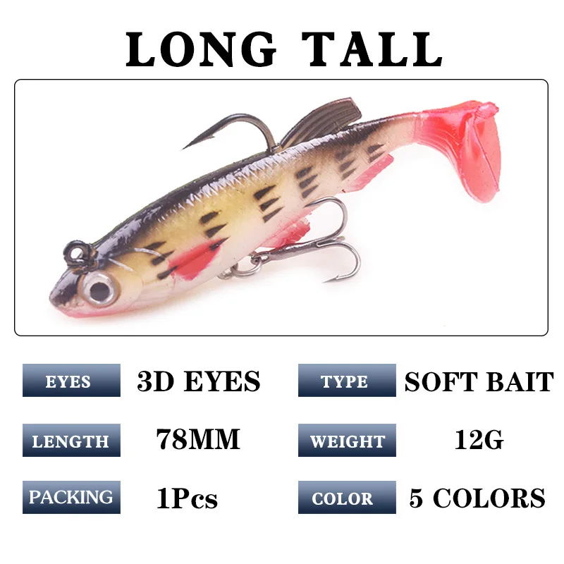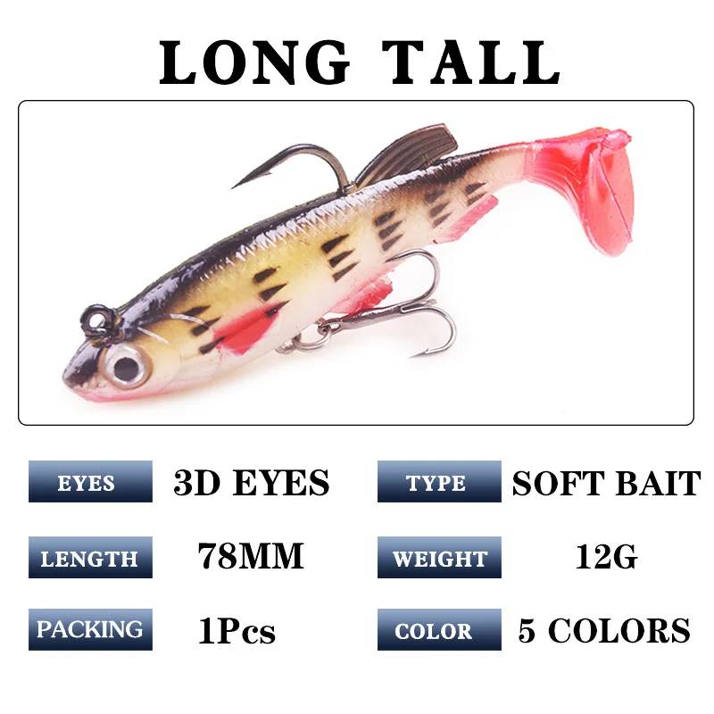 1 шт., Мягкая силиконовая приманка, 7,5 см 12 г, рыболовные воблеры с Т-образным хвостом, с крючком, приманка из искусственной резины для окуня, щуки, приманка для плавания, снасти