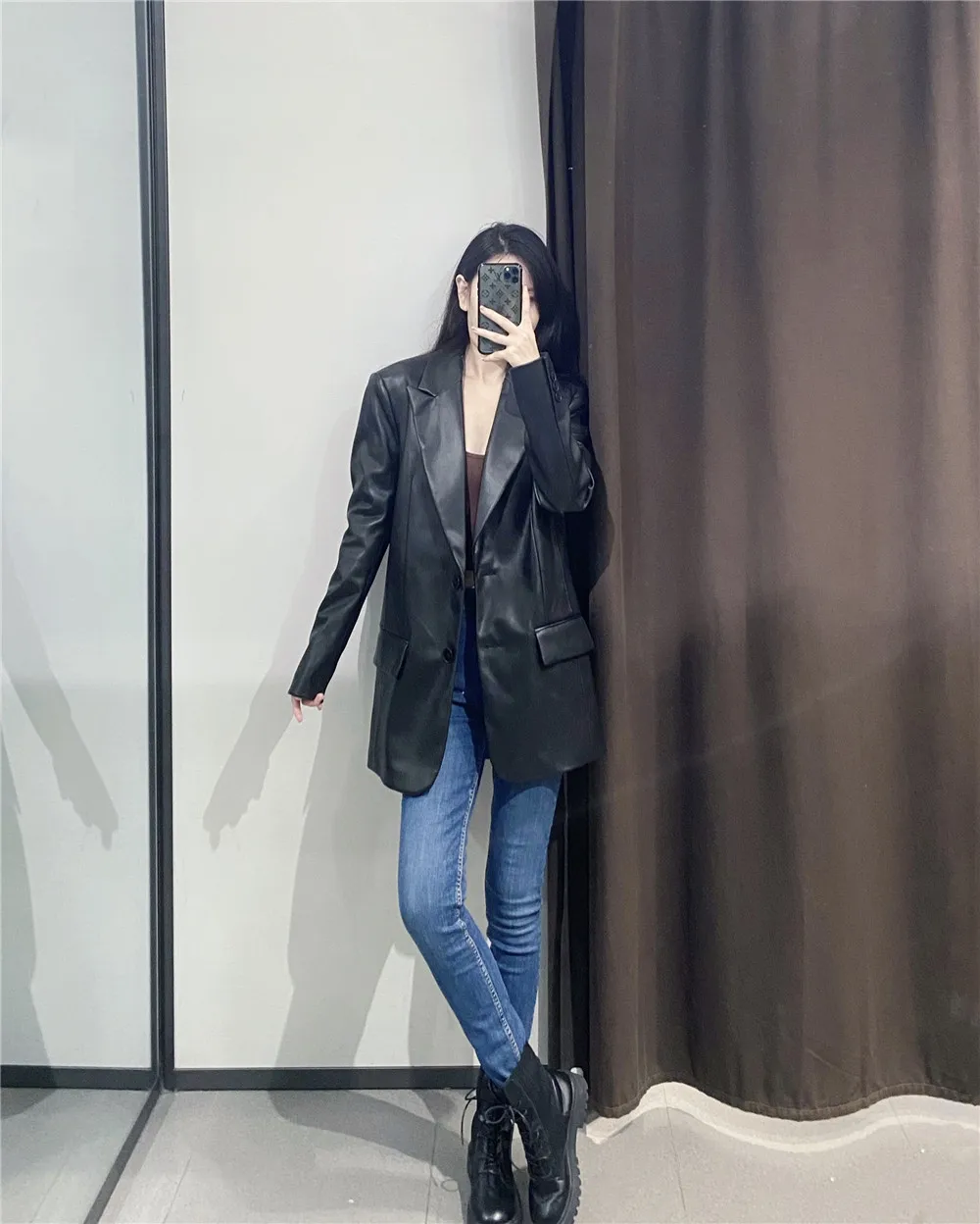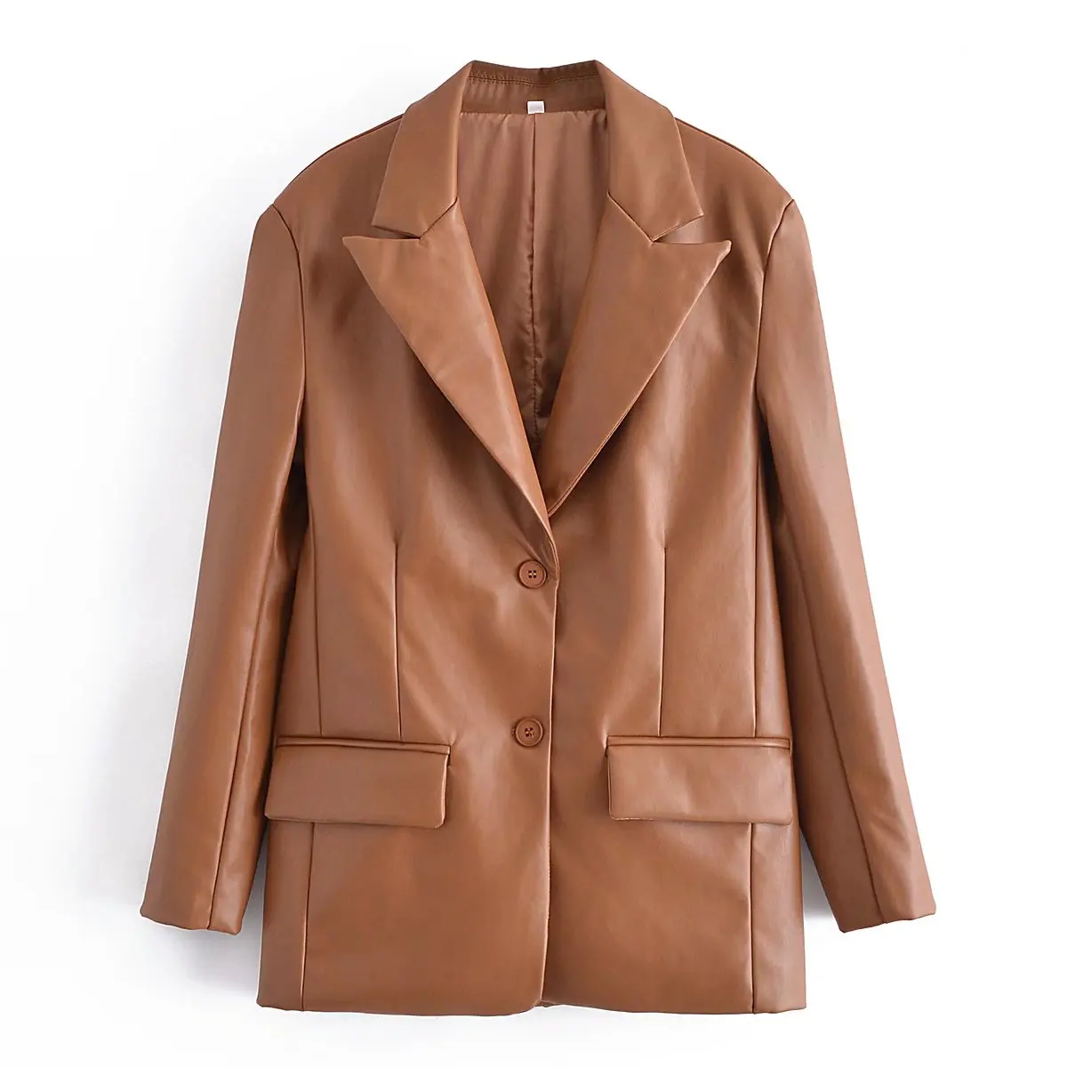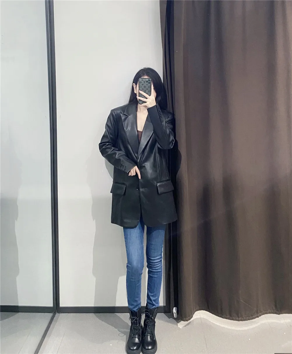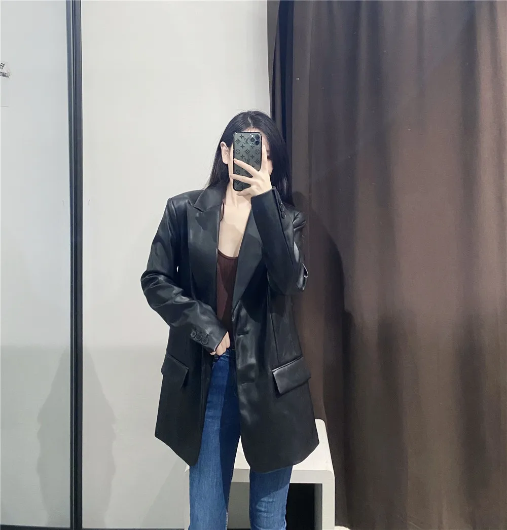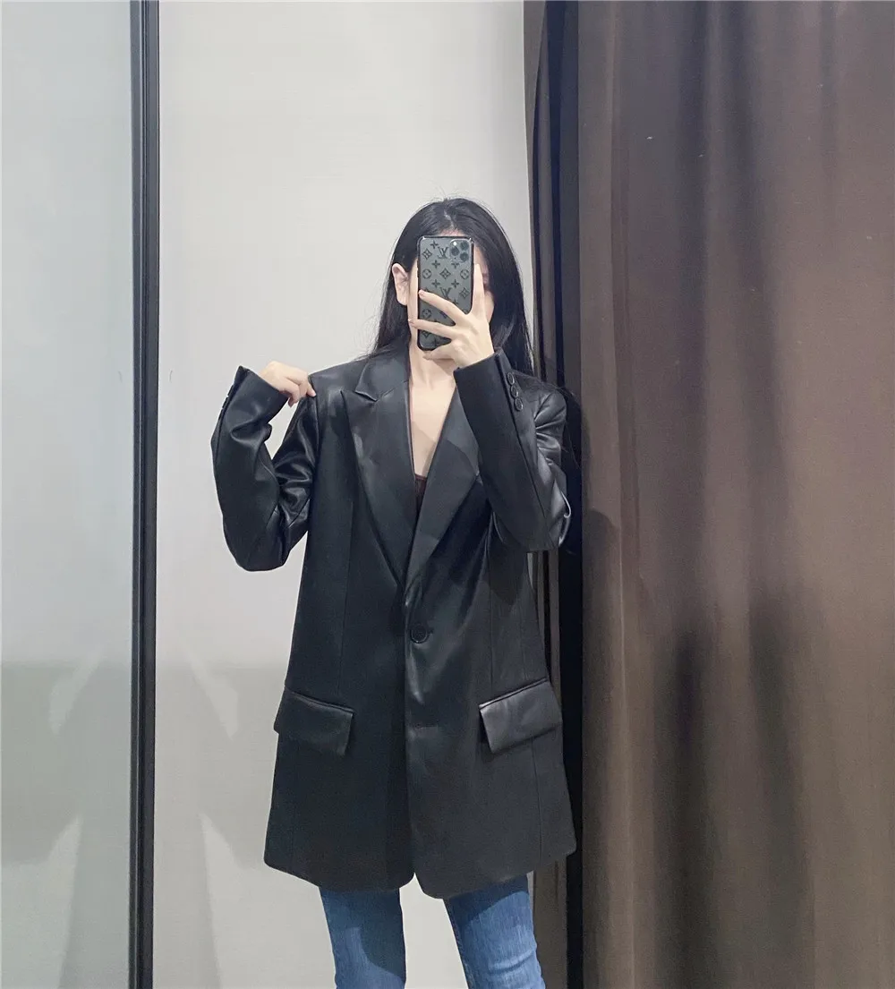 Свободные блейзеры из искусственной кожи, женская кожаная куртка, пальто, 2022, Новая женская верхняя одежда, пальто, женский кожаный костюм