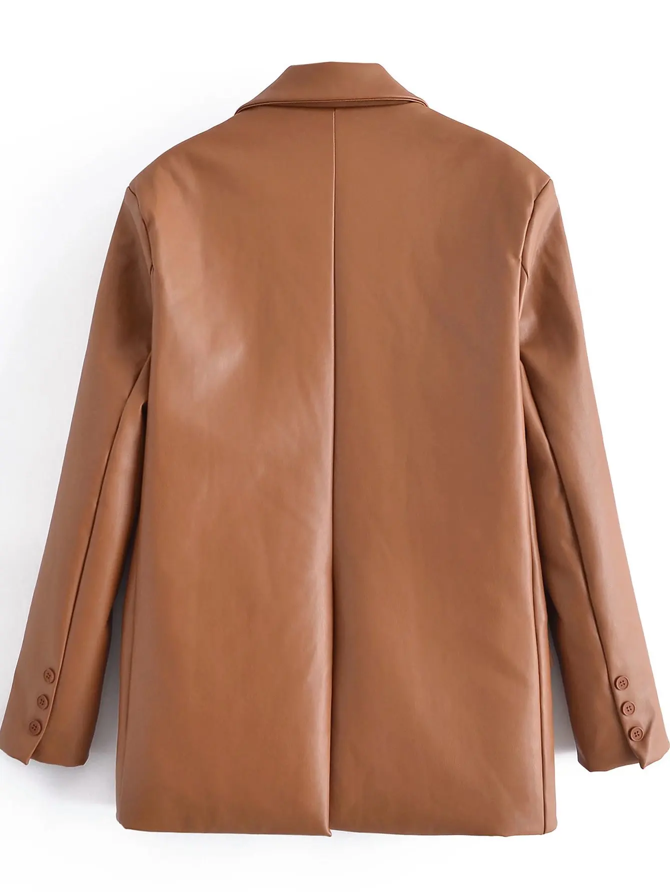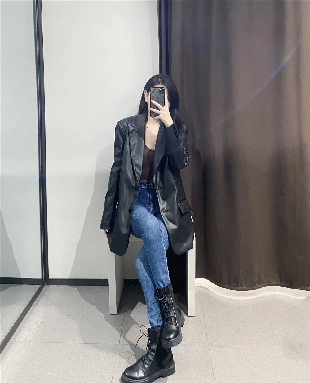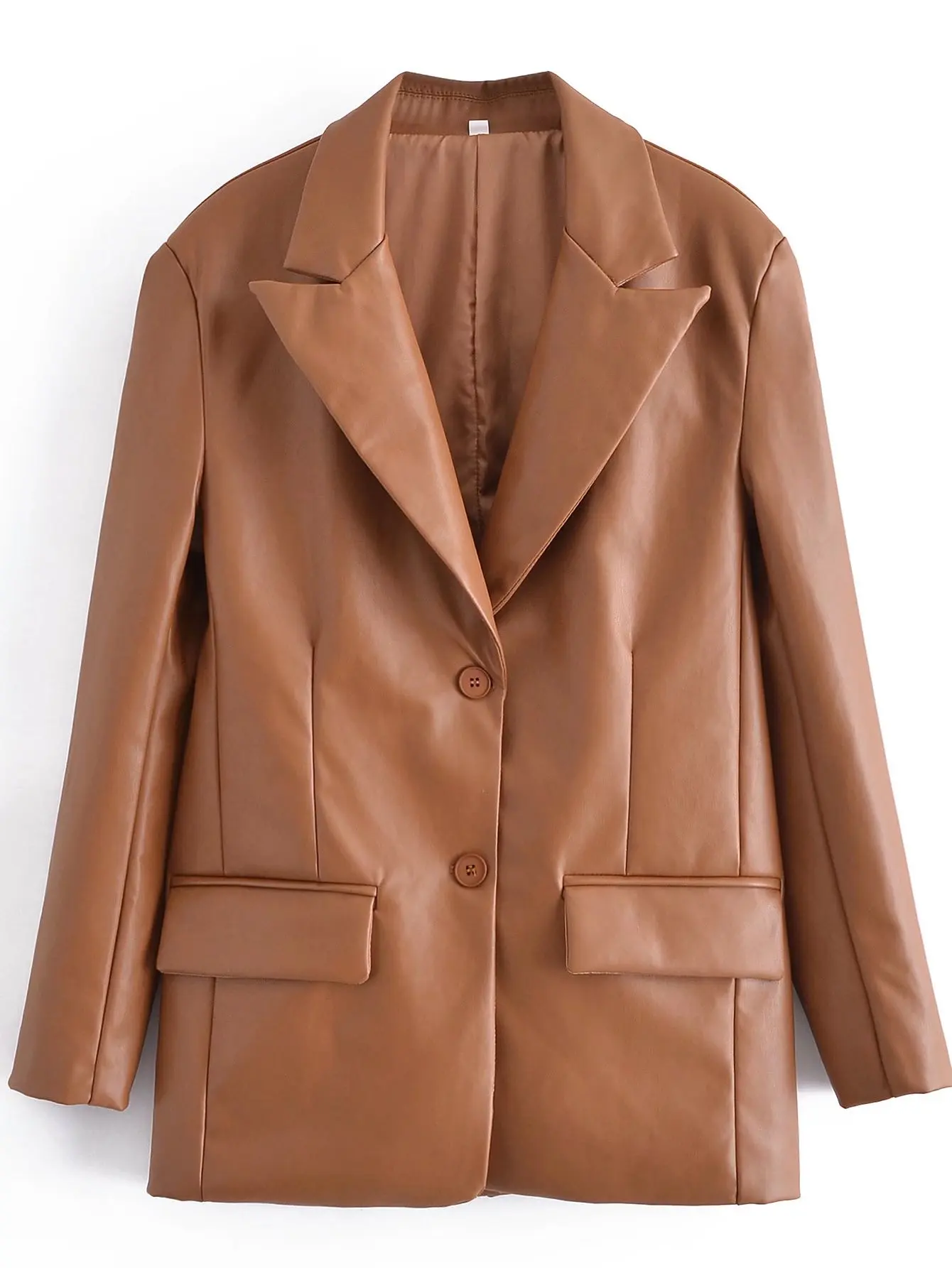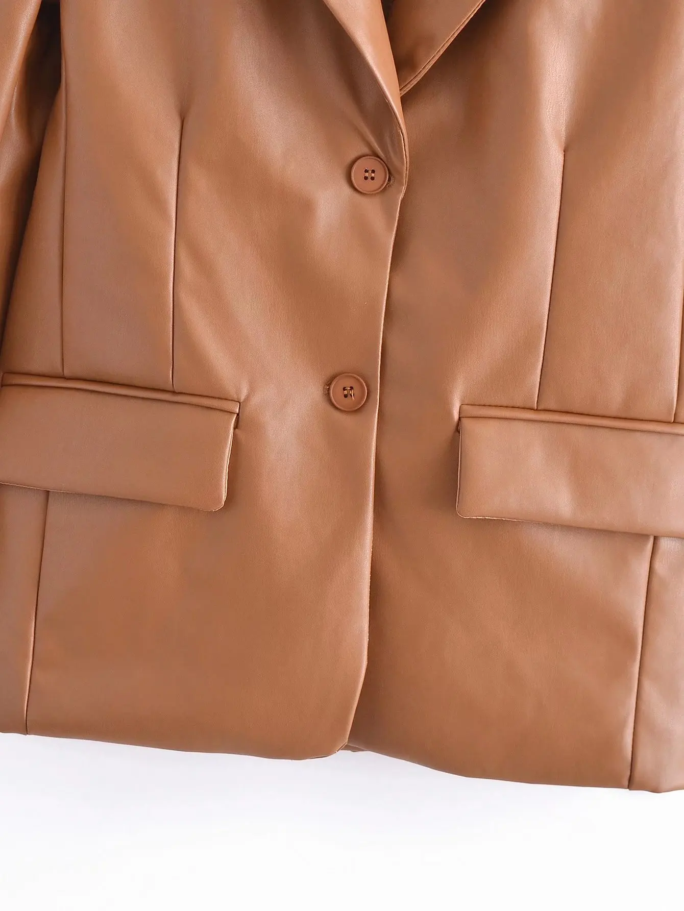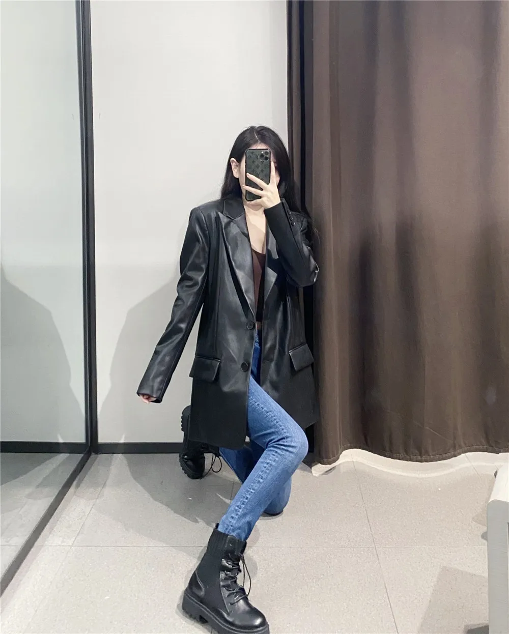 Свободные блейзеры из искусственной кожи, женская кожаная куртка, пальто, 2022, Новая женская верхняя одежда, пальто, женский кожаный костюм