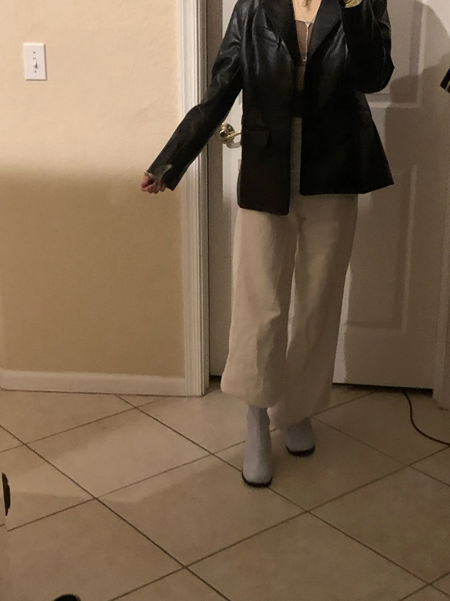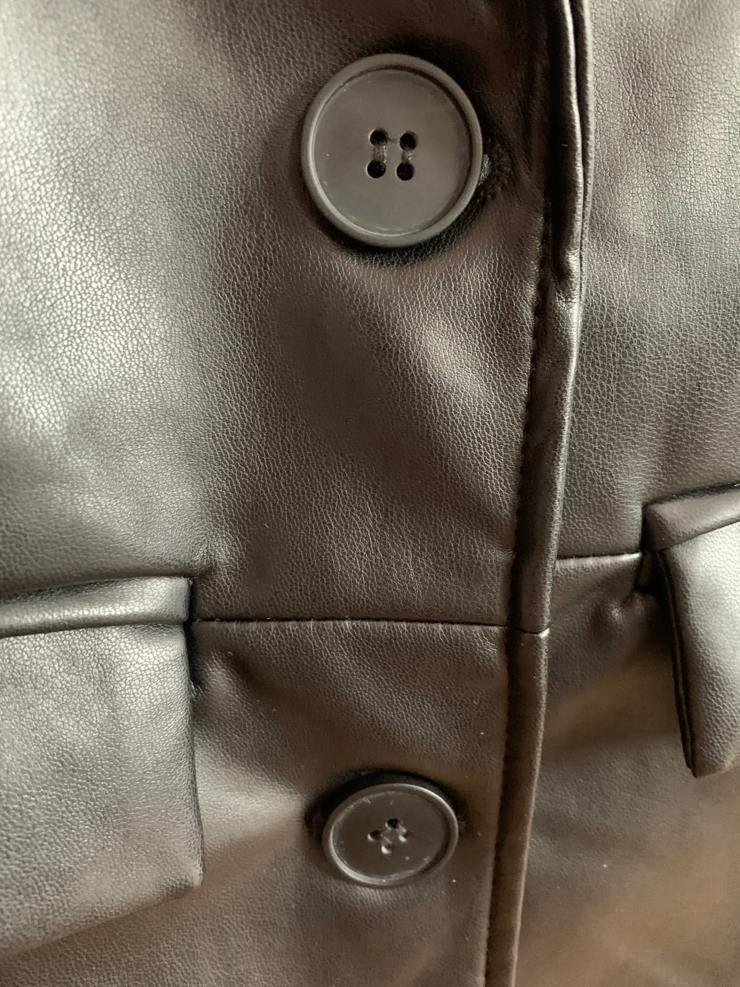 Прекрасного качества пиджак. Пахнет как настоящая кожа. Сидит отлично. Очень стильная вещь. Нет никаких пререканий, одно удовольствие)