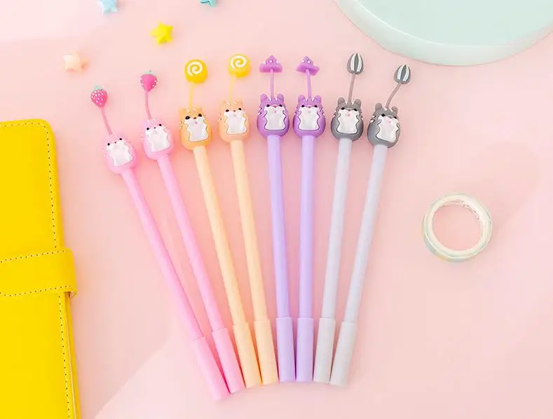 Гелевая ручка с рисунком хомяка, милый ручки, кавайные канцелярские принадлежности, гелевая ручка для студентов, новые Канцтовары, кавайные ручки, школьные принадлежности, подпись