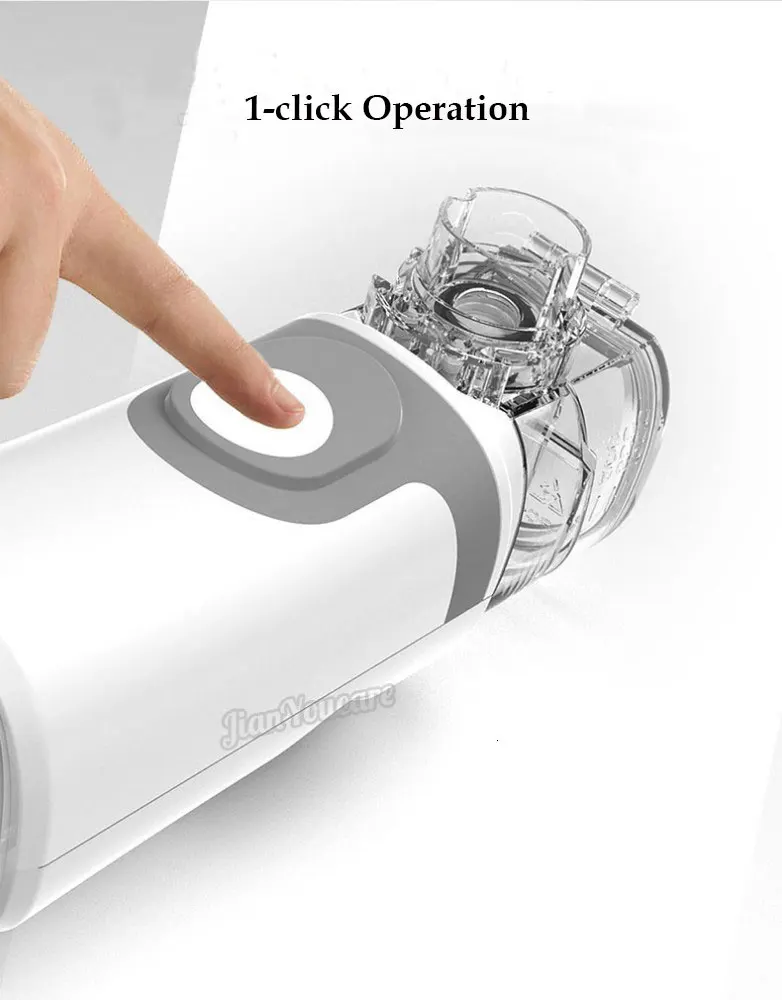 Название бренда: JianYouCareПроисхождение: КитайСертификация: CEЦвет: темно-синий или серыйРазмеры: 14,0 × 11,0 × 6,0 см/5,5 × 4,3 × 2.3inПригодность: для всех возрастовВес: прибл. 99 г/3,4 ozМощность: прибл. 2 ВтВходное питание: 5 В постоянного тока или 2 батарейки типа ААРаспыления скорость: ≥ 0,25 мл/мин.Распыленные частицы: ≤ 3,7 мкмКласс водонепроницаемости: IP22Максимальная температура воды: до 50 °C/122 °FМедицинская чашка ёмкость: 0,5 мл 10 мл/0,3 ozУровень шума: ≤ 50 дБUSB Длина шнура: 1,5 м/4.9ft