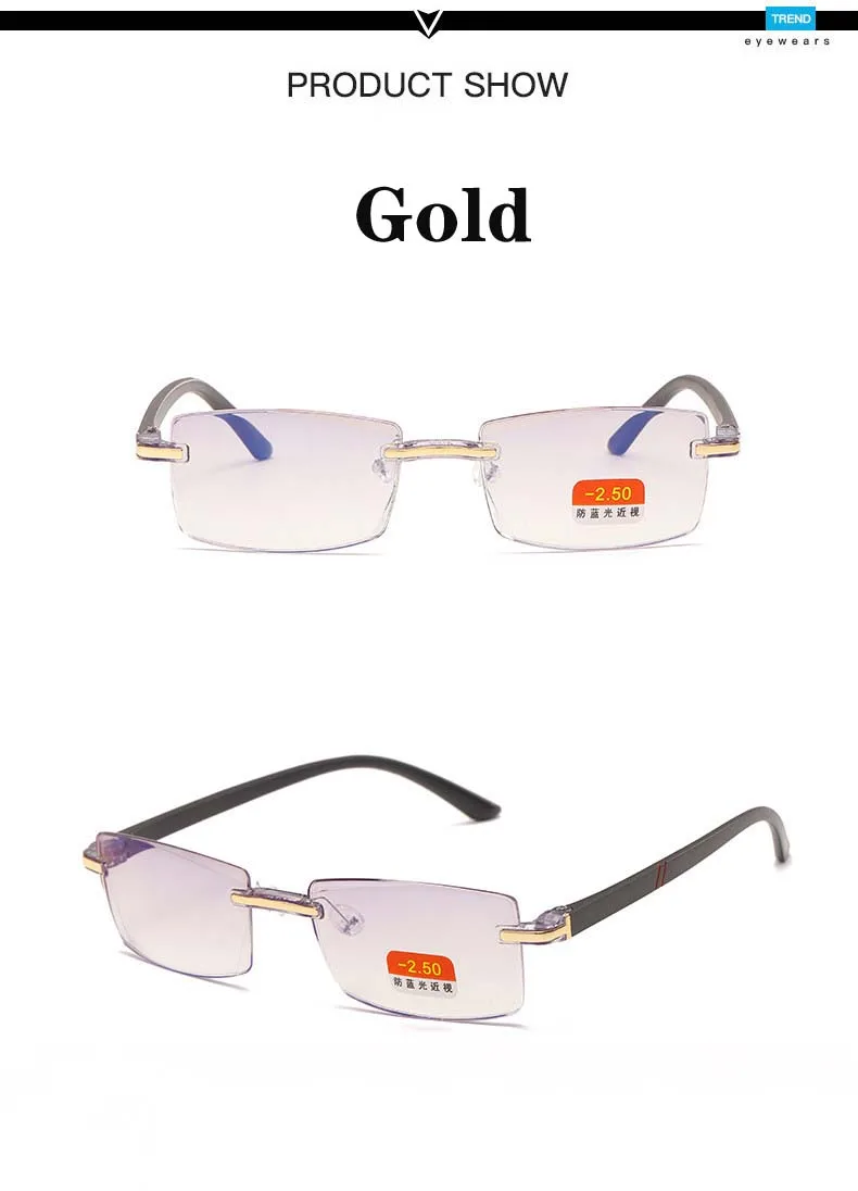 Очки для близорукости без оправы, аксессуар для коррекции близорукости, в золотистой и серой оправе, 1-1,5-2-2,5-3-3,5-4