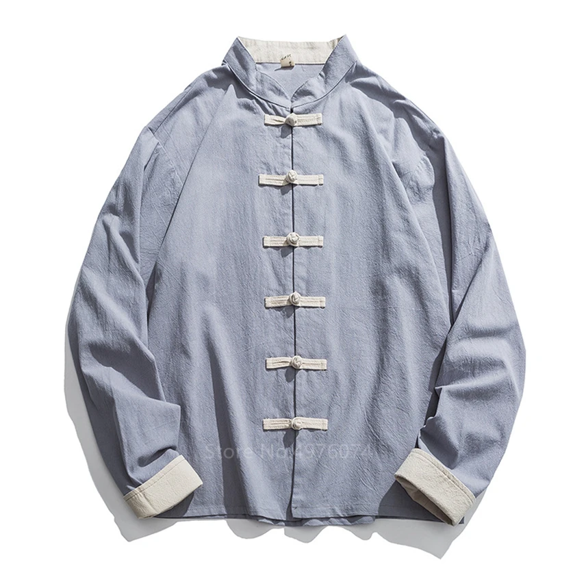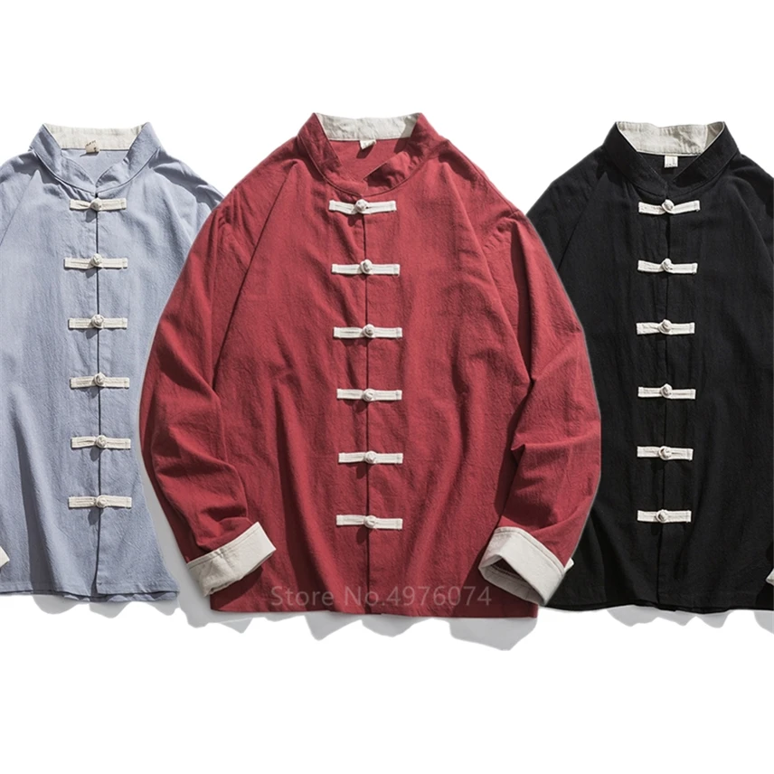 Новинка 2022, куртка-кимоно, Мужская традиционная китайская одежда, льняной Топ ханьфу с длинным рукавом, костюм Тан, рубашка Кунг-фу, кардиган, пальто