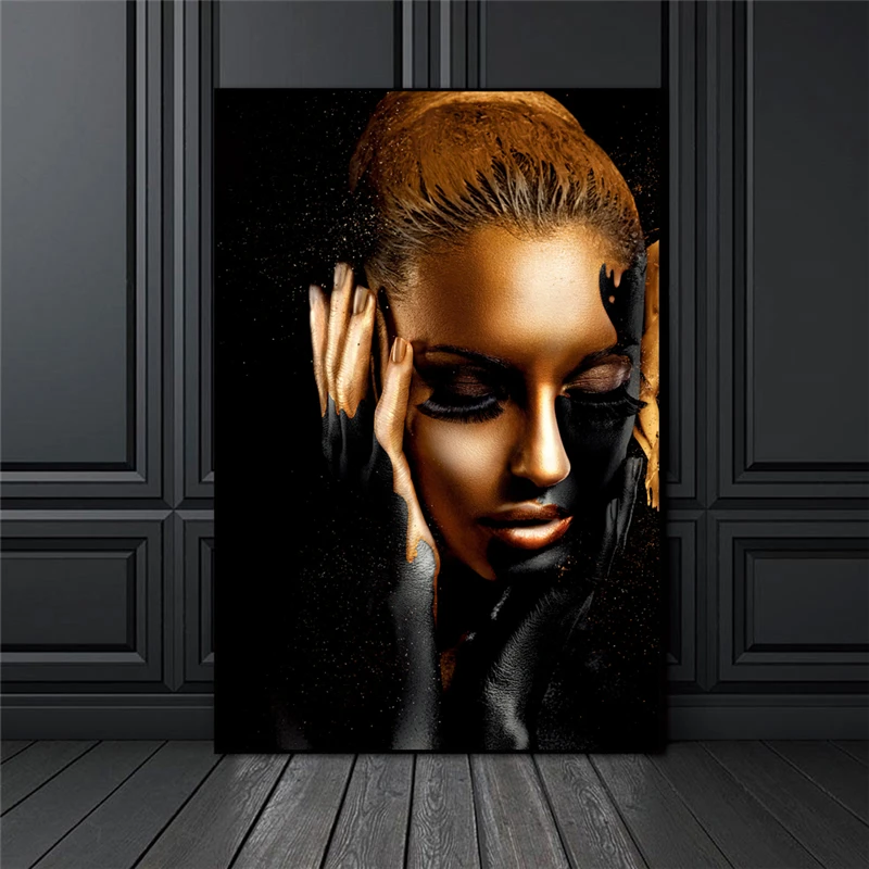 Черные и золотые женские картины маслом на холсте в африканском стиле, художественные плакаты и принты обнаженной стены, скандинавские куадросы для декора гостиной