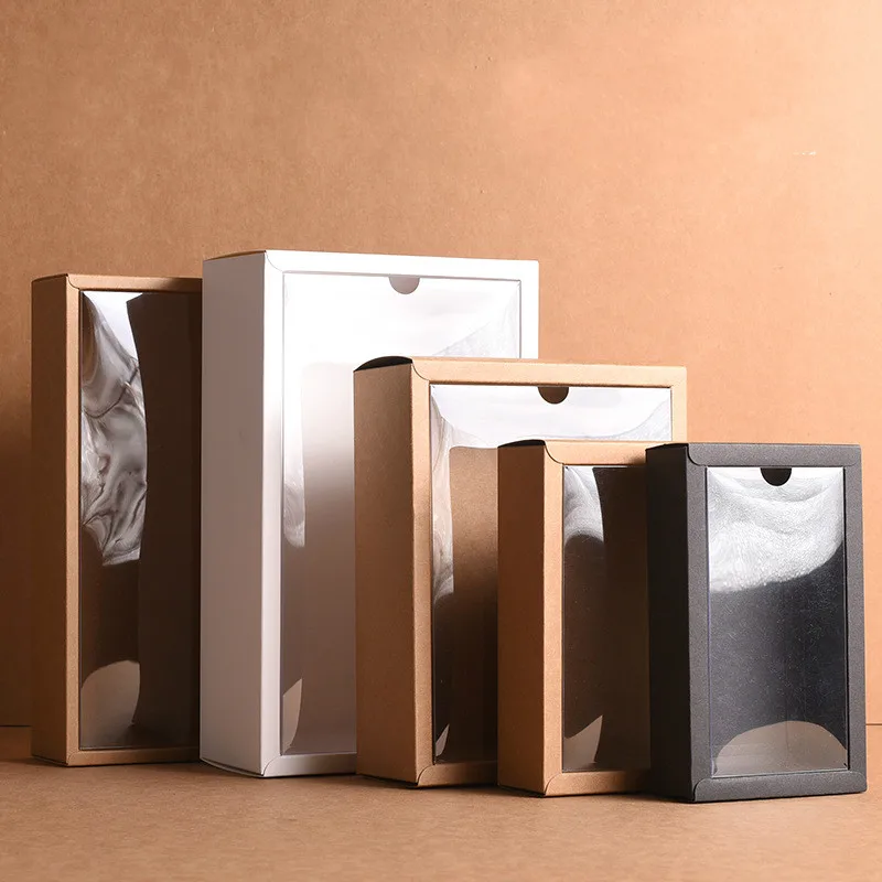 10 шт. красный/белый/черный/крафт-бумага коробка с прозрачной крышка ПВХ ручной работы мыло упаковочные коробки различных размеров подарочная упаковка коробка
