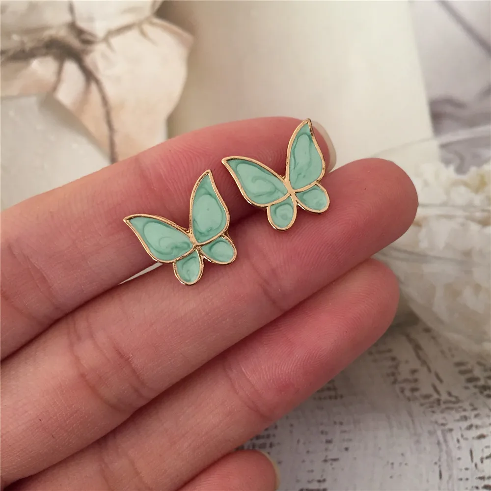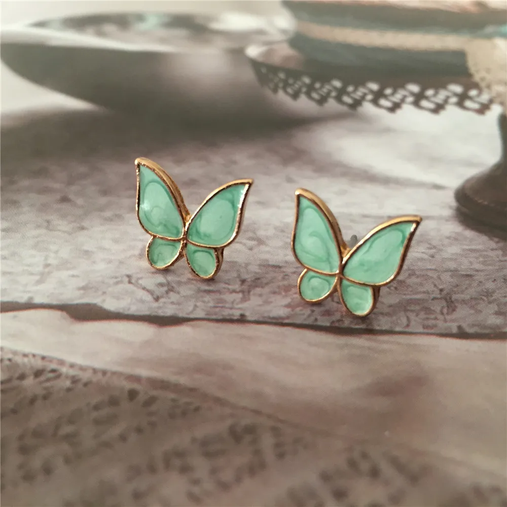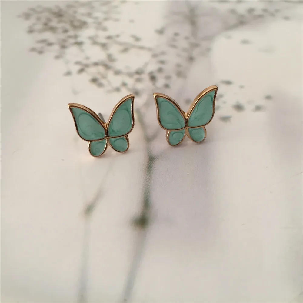 2020 новые модные золотые Цвет сплав Зеленая бабочка серьги-гвоздики милый штифт с насекомым серьги для женщин и девочек современная мода