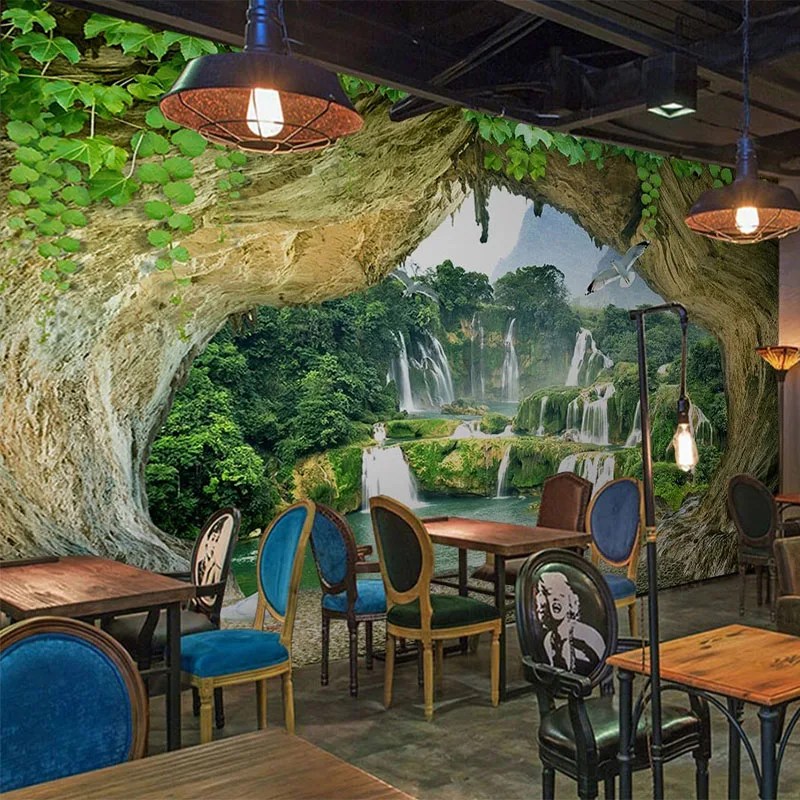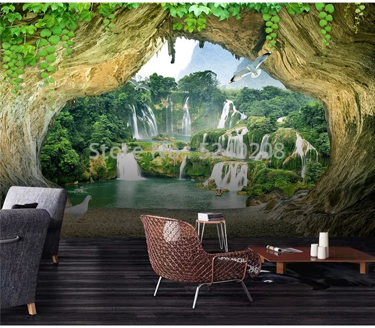 Пользовательские 3D обои, Современная пещера, водопад, пейзаж, фрески для гостиной, ТВ, дивана, фон, Настенный декор, 3D водонепроницаемые настенные наклейки