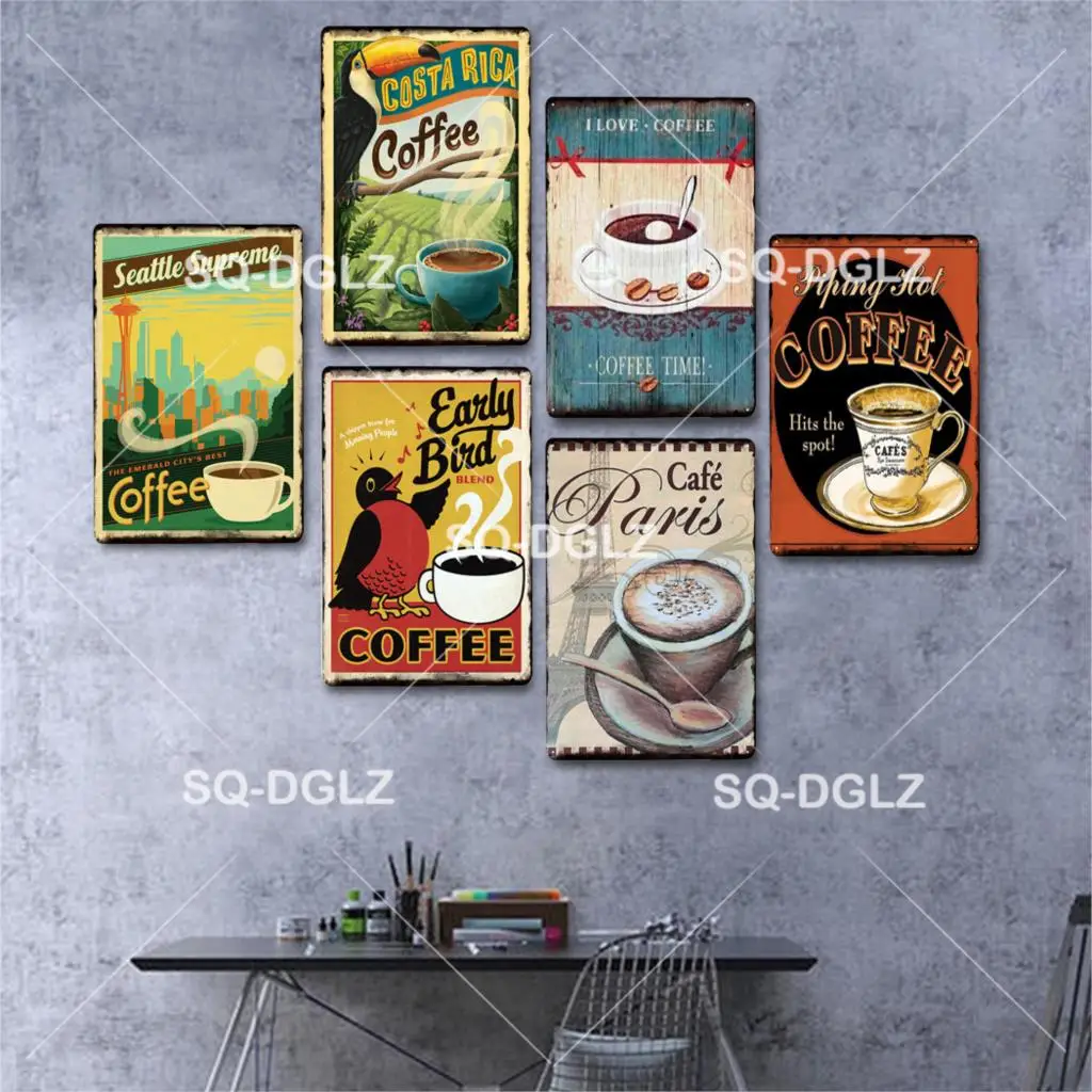 Металлический знак для кофе, металлический винтажный декор для паба, бара, жестяной знак, тарелка для кофейни, плакат, домашний декор, художественная живопись, Настенная Наклейка
