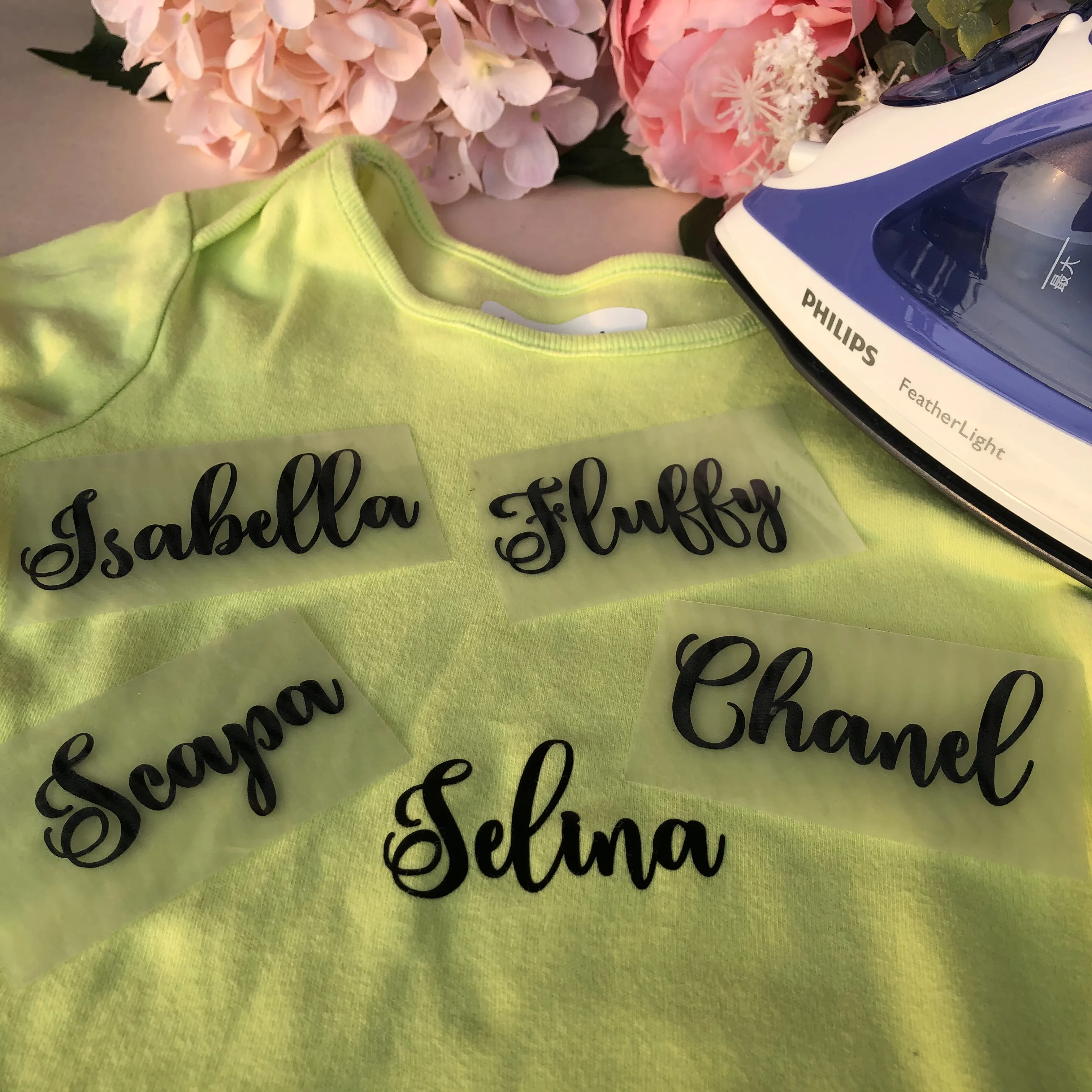 Персонализированная наклейка с именем, горячая переводная Виниловая наклейка для ткани, одежды, персонализированные именные этикетки для костюма