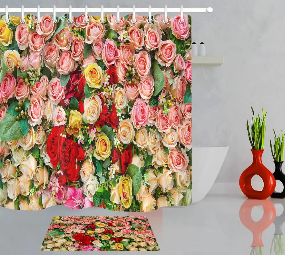 Настенная занавеска для душа с цветком розы на День святого Валентина, занавеска для ванной, декор для ванны, занавеска из полиэфирной ткани с 12 крючками
