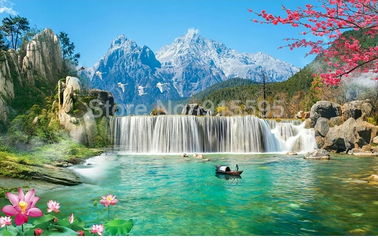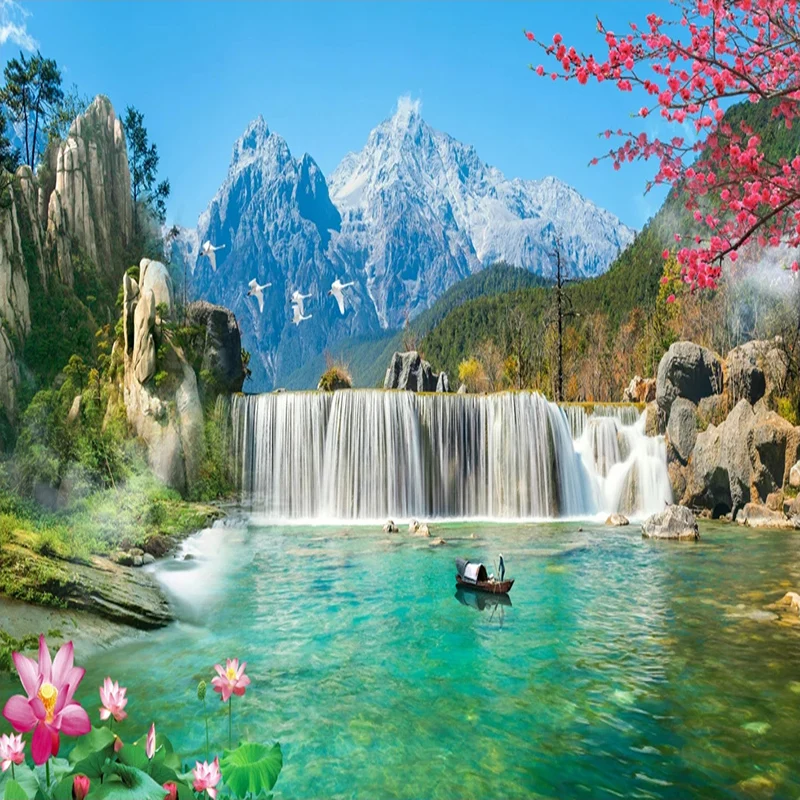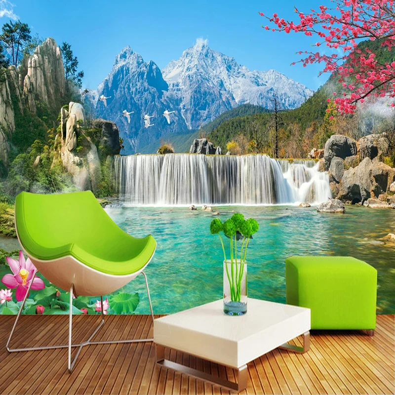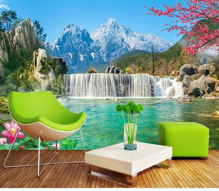 3D обои с изображением Снежной Горы, водопада, наклейки на стене обои, самоклеящиеся