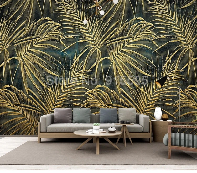 Настенная роспись на заказ, современный 3d-фон с изображением золотых листьев, настенная живопись для столовой, гостиной, дивана, фона за телевизором, водонепроницаемые фрески