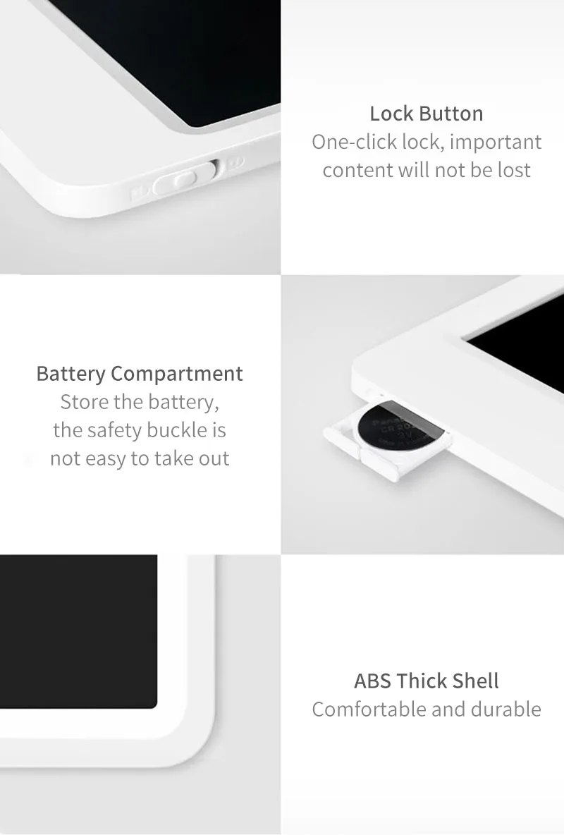 Xiaomi Mijia LCD маленькая доска с ручкой- Вы можете рисовать, когда захотите, записывайте момент вдохновенияЧувствительное к давлению письмо; Супер чистый почерк; Магнитное поглощение; Светильник, легко носить с собой.- Индивидуальная Формула ЖК-пленки, четкий почеркМаленькая доска Xiaomi Mijia LCD принимает индивидуальную формулу жидкокристаллической пленки, сине-зеленый почерк, четкий и привлекательный дисплей, как реальный опыт написания традиционной бумаги, так и плавный опыт ЖК-экрана.- Высокочувствительная технология определения давленияТолщина почерка меняется с силой.- Одна кнопка, чтобы очистить низкое энергопотребление, длительный срок службы батареи является более беззаботнымЖК-экран с нулевой мощностью потребляет только небольшое количество энергии, когда он очищается. Если вы удаляете 100 раз в день, аккумулятор кнопки используется для 365 дней.-Ультрамагнитный стилус-светильник для более удобного храненияВес ручки составляет всего 7 г, и вся машина использует четыре неодимовых магнита из железного бора, которые обладают сильной адсорбционной способностью и долговечной магнитной силой.-Ультратонкий корпус, легко носить с собойТонкий корпус 7 мм тонкий, светильник и портативный, что снижает нагрузку на путешествия.