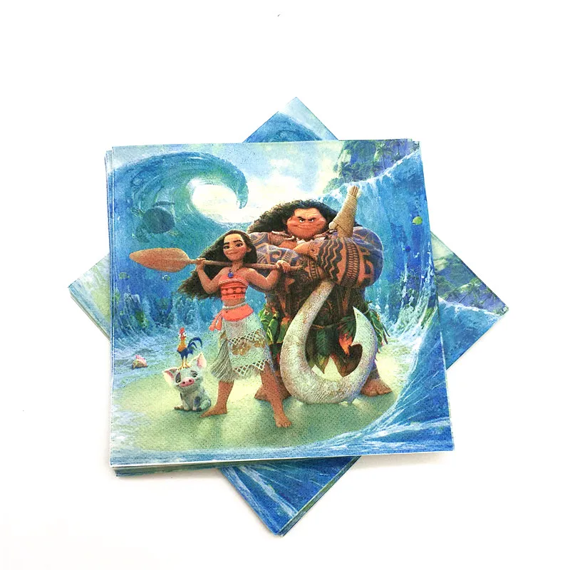 Набор посуды из мультфильма Моана, соломенная тарелка, салфетки, ко...