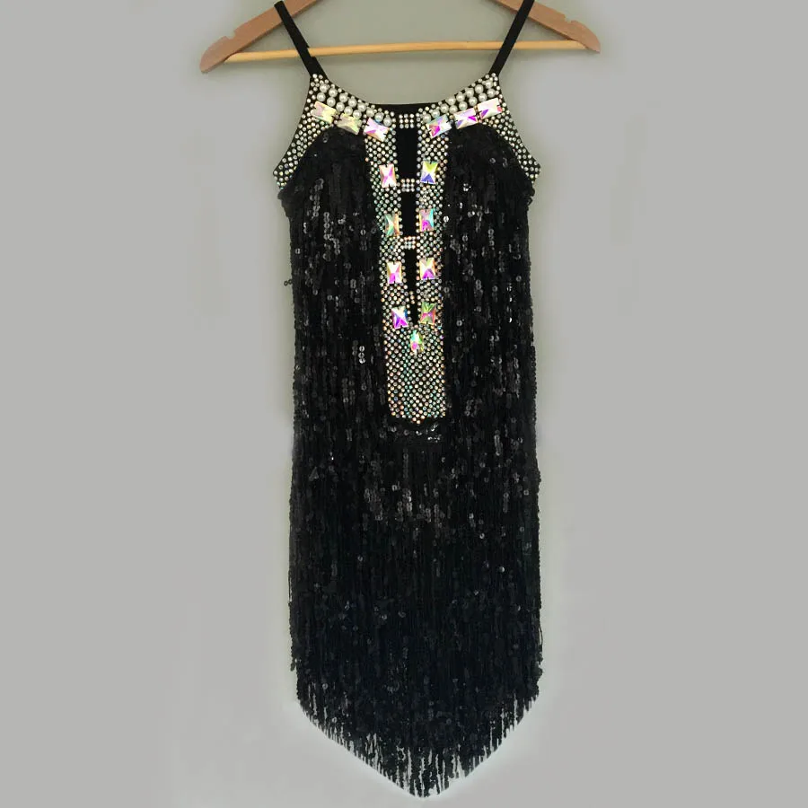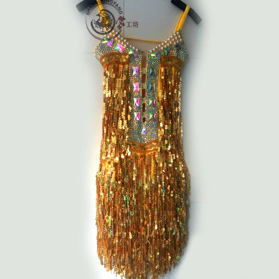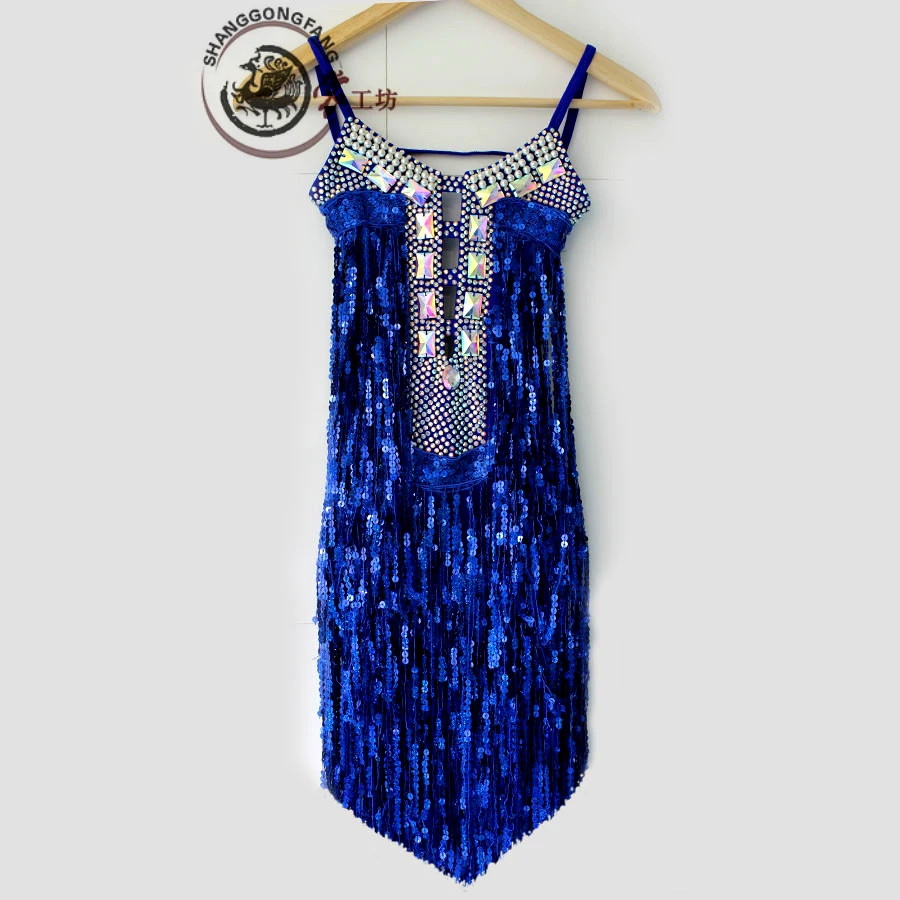 Стразы платье для латинских танцев Женский взрослый костюм бахрома латинские танцы Конкурс платья Одежда для сальсы Одежда для танцев