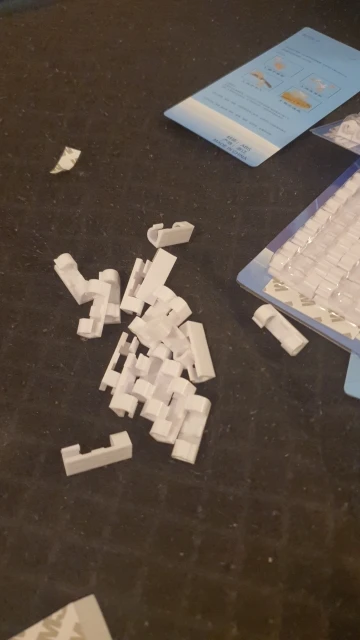 Пришло через 15 дней после заказа. На кабель садятся очень крепко, не болтается. Из минуса могу отметить только что двухсторонний скотч не наклеен на сами зажимы, т.е. надо будет приклеивать сначала его на зажимы, а потом на необходимую поверхность зажим со скотчем.