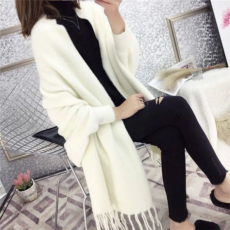 Имитация норки бархат хорошее качество не ворс осень зима новый кардиган свитер шаль пальто Корейский темперамент Модный Плащ