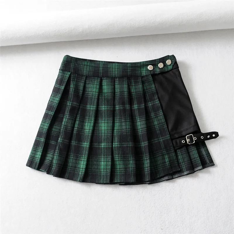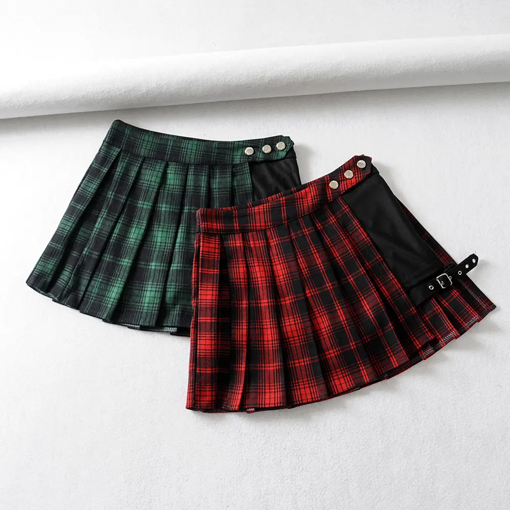 Юбка-шорты Женская плиссированная, красно-зеленая, с высокой талией