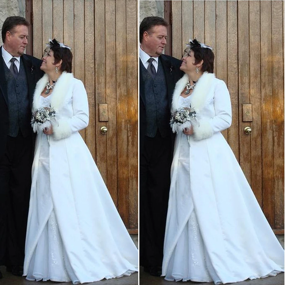 Свадебная куртка с длинным рукавом из искусственного меха, вечерняя накидка из атласной ткани с искусственным мехом для невесты