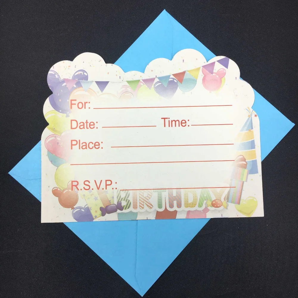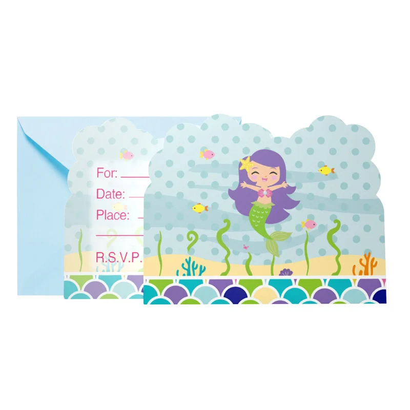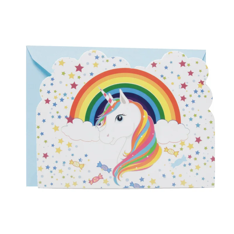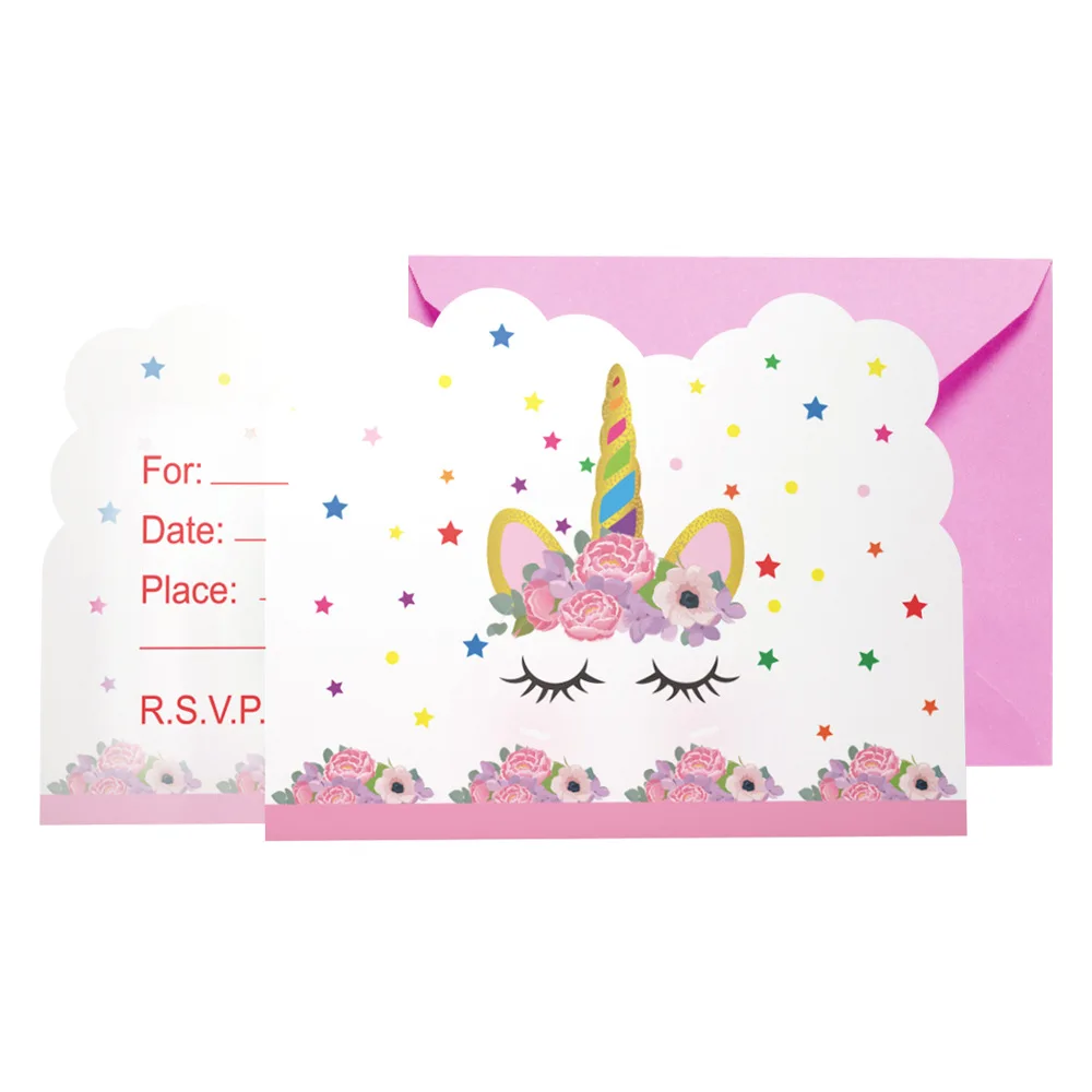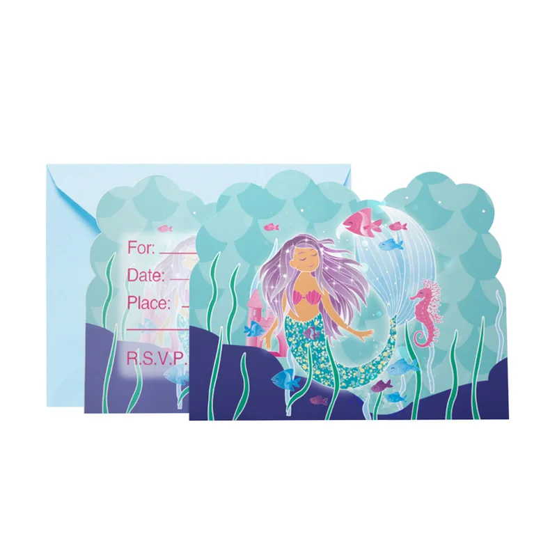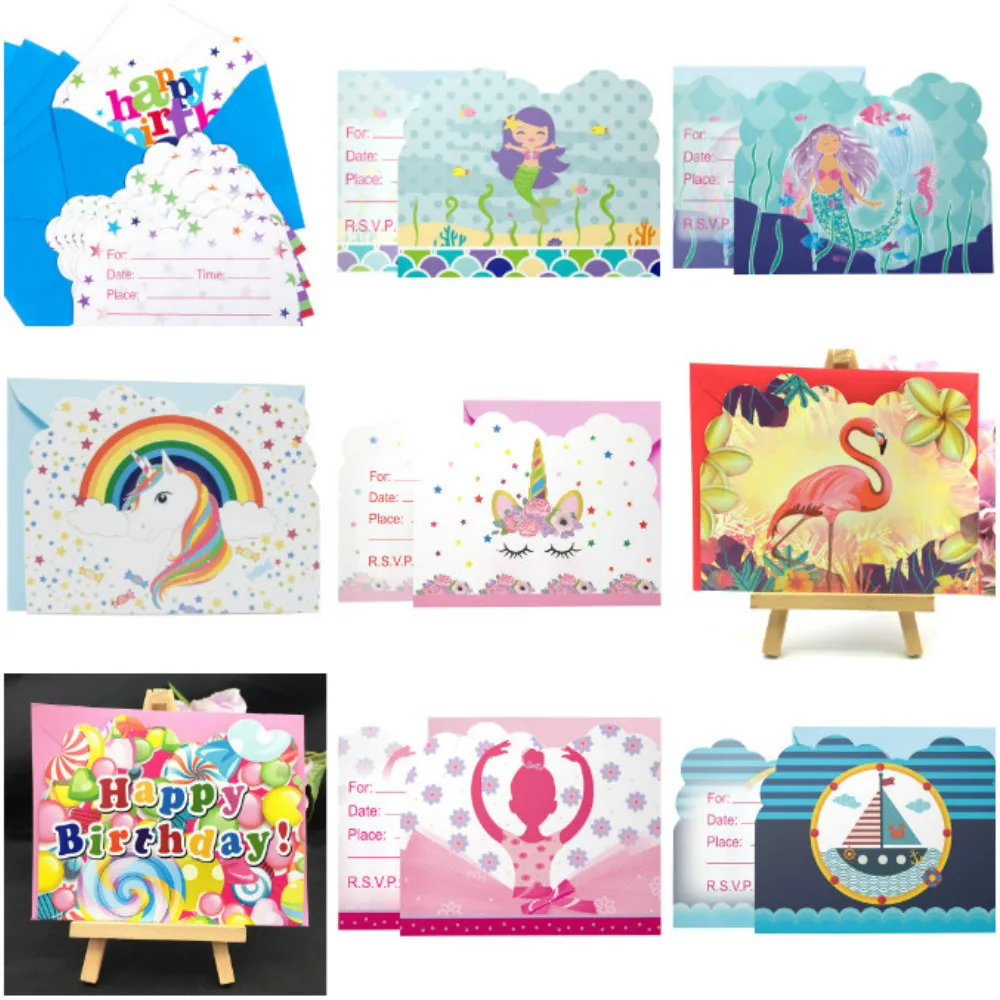 Украшение для детского дня рождения, 6 открыток + 6 конвертов, единорог, Русалка, пират, бумажные Пригласительные открытки
