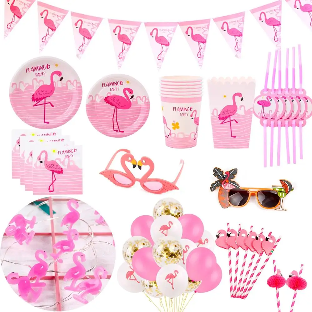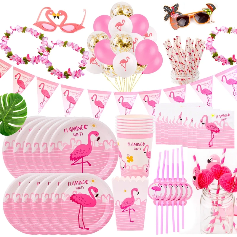 Одноразовая посуда с фламинго для Гавайской вечеринки, тропический ...
