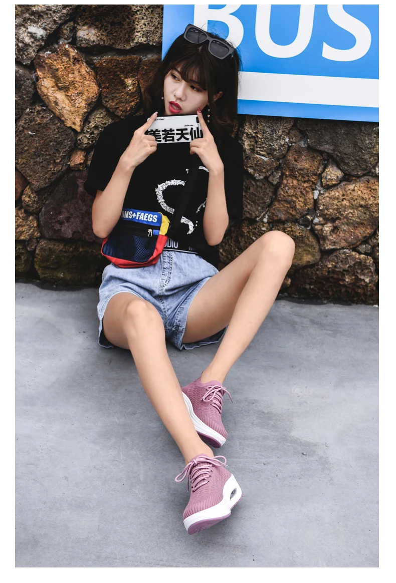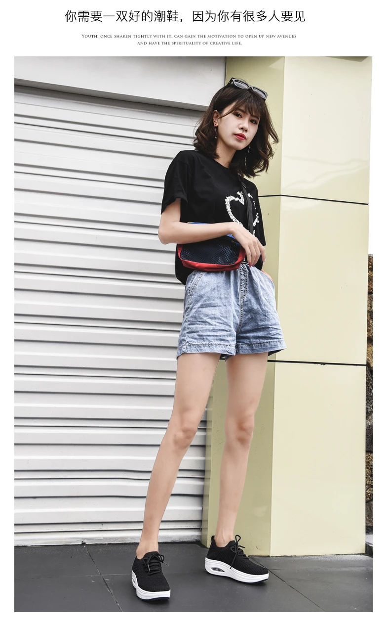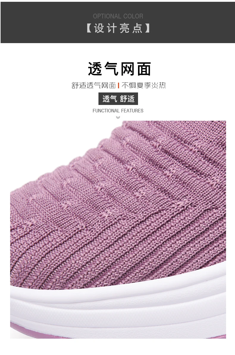 Модная женская обувь из дышащего сетчатого материала; обувь на танкетке; женские кроссовки с вязаным носком; женская повседневная обувь на платформе