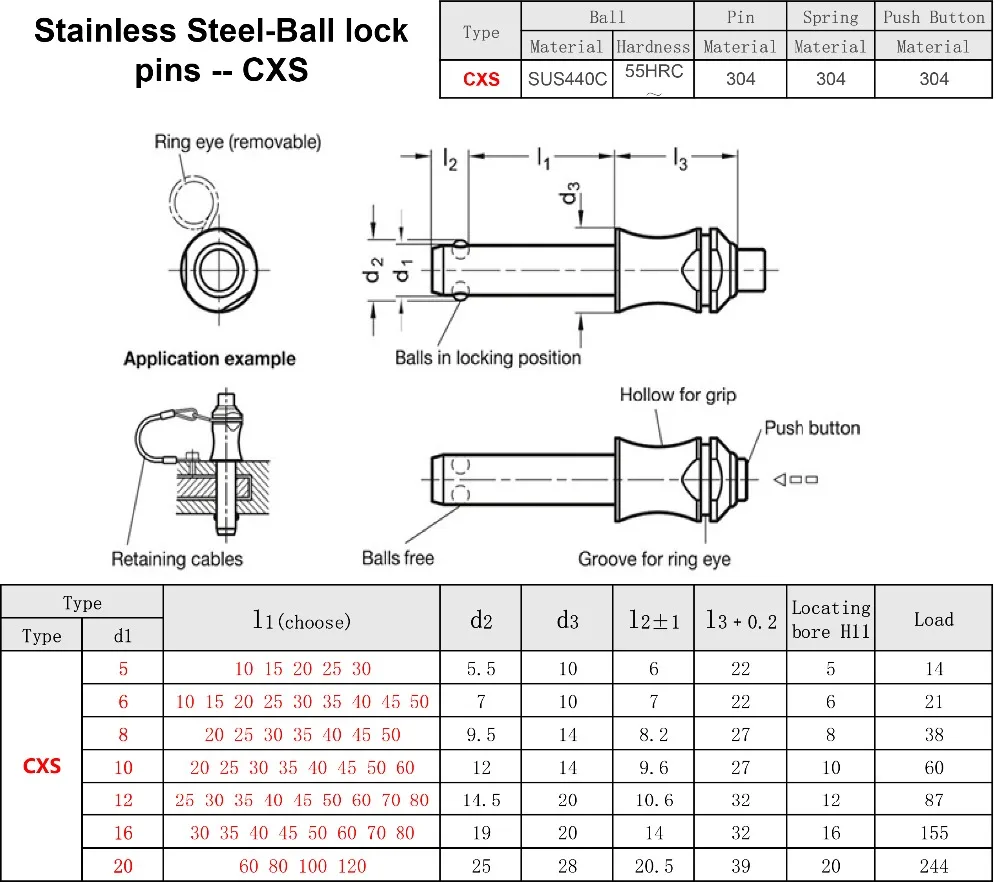 Быстроразъемные штифты из нержавеющей стали 304, шариковые штифты с кабелем диаметром 568101216, Длина рукоятки 10-100 мм
