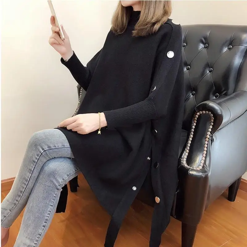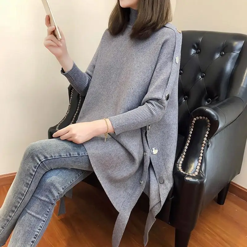 Женский плотный свитер-накидка, свободный свитер с полувысоким воротником, для осени и зимы, 2021