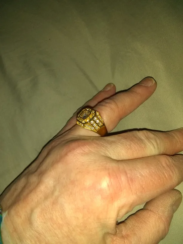 The ring is ok, but it's not as pictured. the Zircon stones on the sides are a lot smaller. So there's more gold finish. Looks a little cheap. but it was only a few bucks. You get what you pay for.