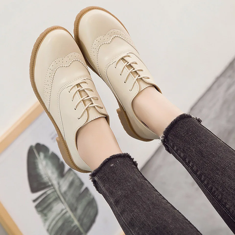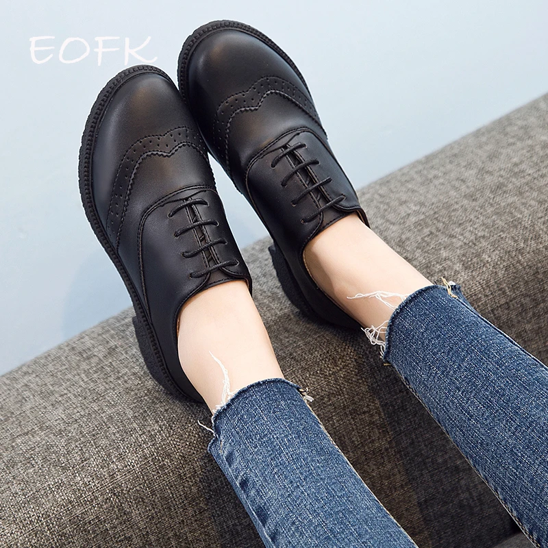 Женские туфли-оксфорды EOFK, из натуральной кожи, на плоской подошве, черные, для осени и весны