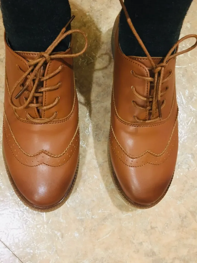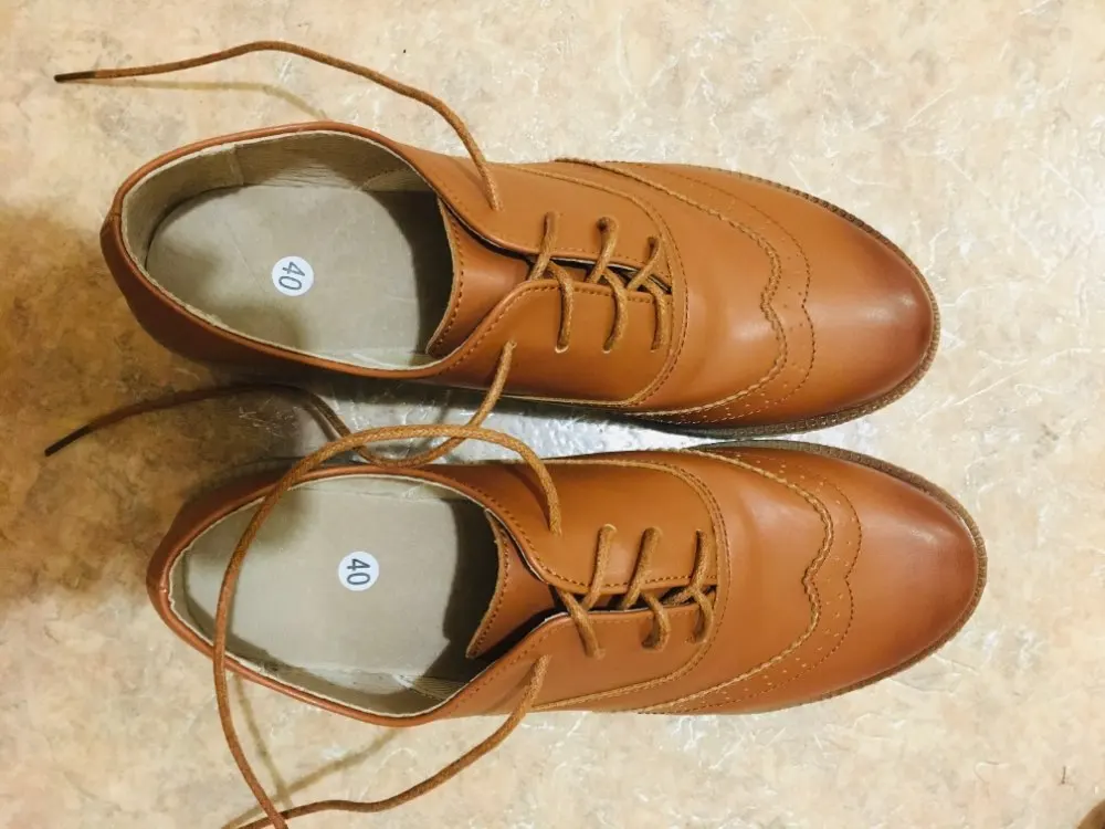 После заказа товара больше недели тишины, написала продавцу выяснить в чем дело, оказалось что у продавца нужного товара нет. После длительной переписке сошлись, что продавец отправит товар другого цвета. В итоге оксфорды пришли непонятного цвета.