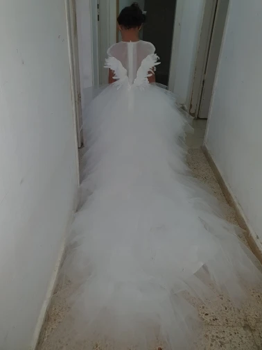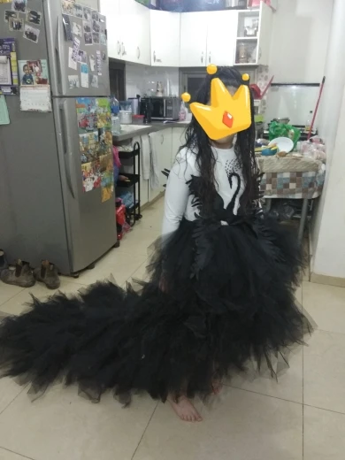 платье шикарное. не ожидали,но шлейф реально длинный! для корновального костюма очень хорошо сшито!быстрая доставка.