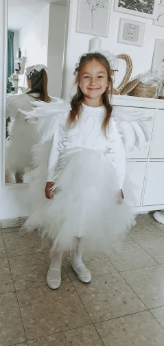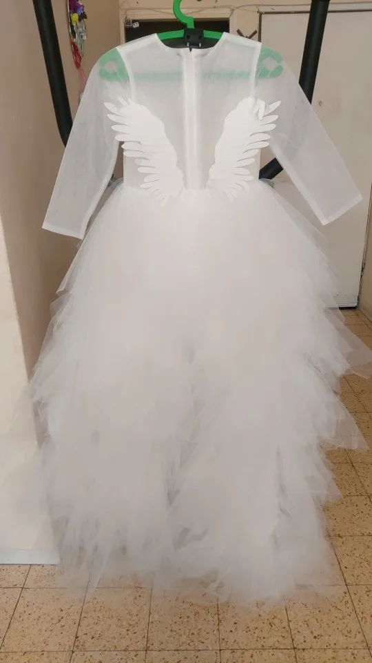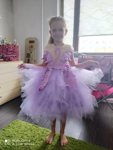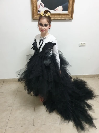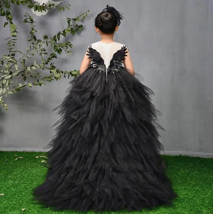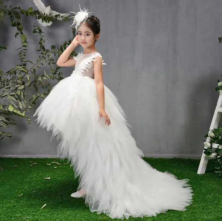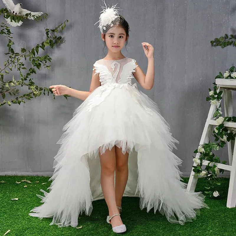 Детское бальное платье, Тюлевое, с лебедем, со шлейфом, с перьями