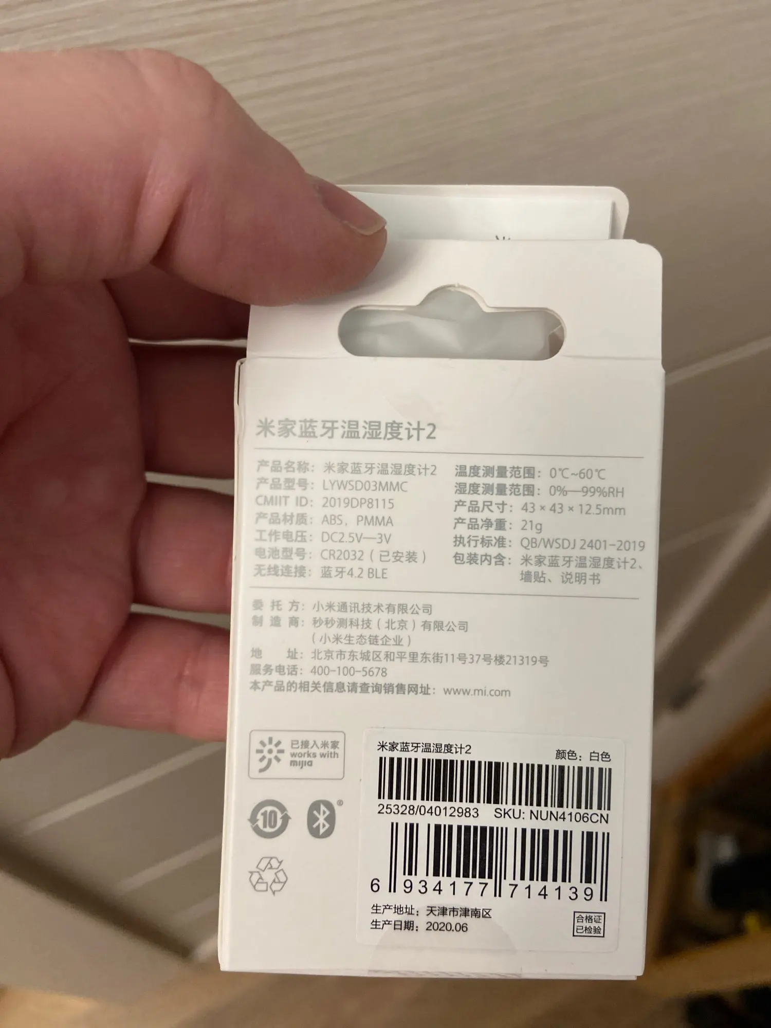 Так пришло за 35 дне в Минск. Просто пакет для пересылок и коробка внутри, немного подмята но это мелочи, сам девайс целенький. Плёнку достал и сразу все заработало, не было значка блютуза, но после включения на телефоне михоум, вайфы и блютуза поднёс к устройству, запустил автопоиск и добавился гигрометр за 30 сек без каких-либо траблов. Батарейка как вы поняли в комплекте, передаёт инфу в реальном времени на телефон, правда должен быть включён синий зуб. Экран немного тускловат, но эт мелочи вообще. Есть опция для детских комнат, встраивается в автоматизации, можно поднастроить запускать увлажнитель или другую климат. технику. Думал размер будет побольше, может это и к лучшему, крепи куда хочешь ляжет в любой интерьер. P. s. Беларусы поймут размер по Аленке). Итог заказывайте.
