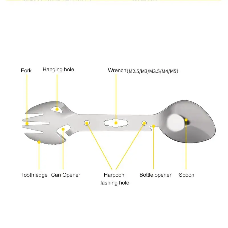 Многофункциональный гаечный ключ из нержавеющей стали для повседневного использования, вилка, ложка, консервный нож, для пикника, кемпинга, выживания