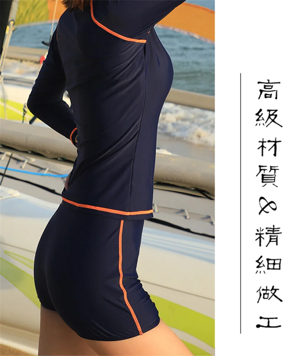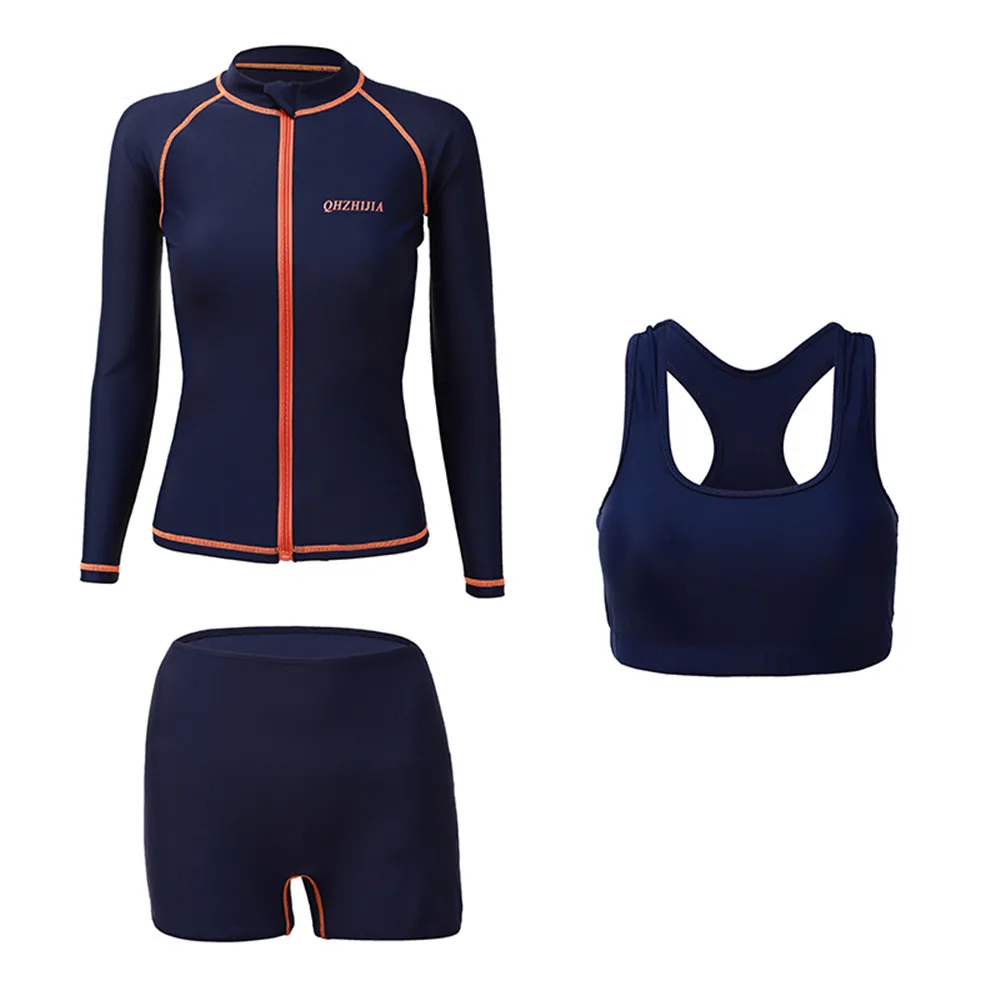 Женский Цельный купальник с длинным рукавом и застежкой-молнией, купальный костюм с высокой горловиной Синие костюмы для серфинга; Шорты; 3 комплекта