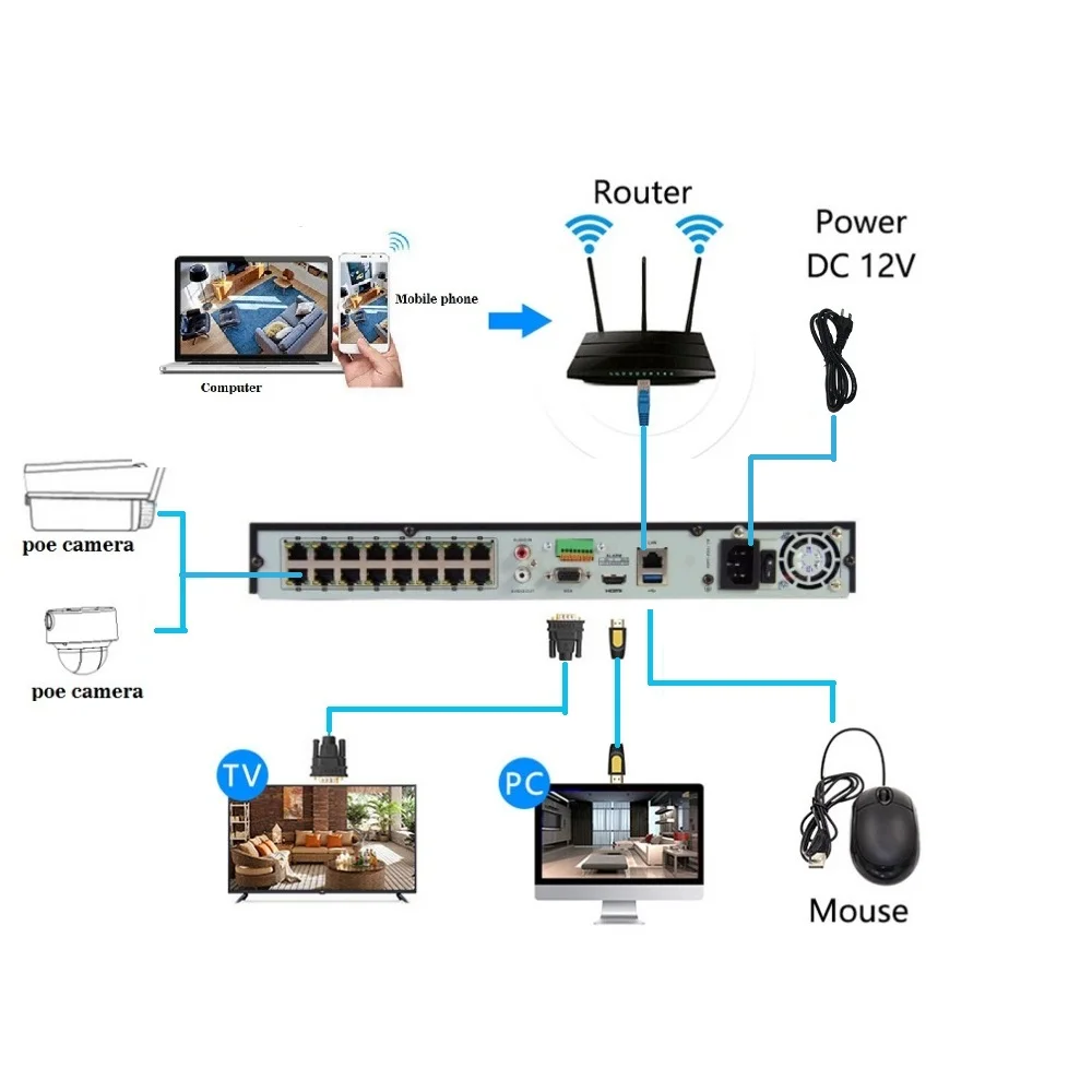 1 * DS-7616NI-K2/16 P 16CH POE NVR (Sterven kan ondersteuning Max 16 шт 4MP camera's) 8*4 МП POE hikvision камера HDD (дополнительно) — 1 шт.