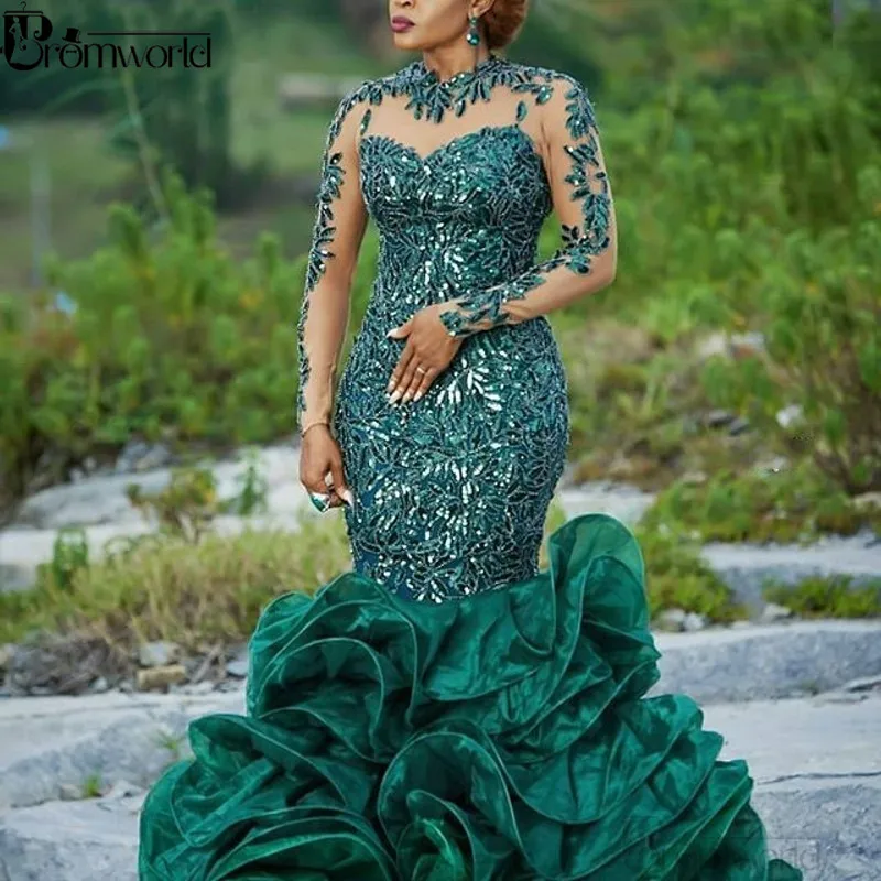 Вечернее платье из органзы Abendkleider Hunter Green с аппликацией и длинными рукавами, вечернее платье с пайетками для выпускного вечера, 2020