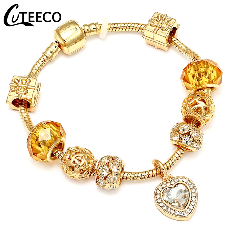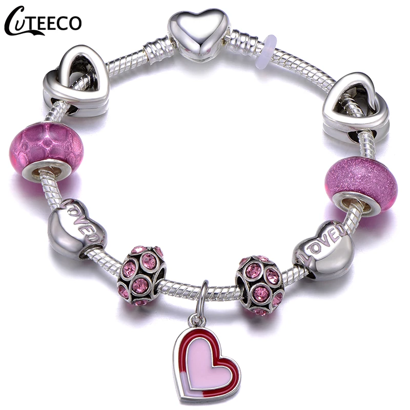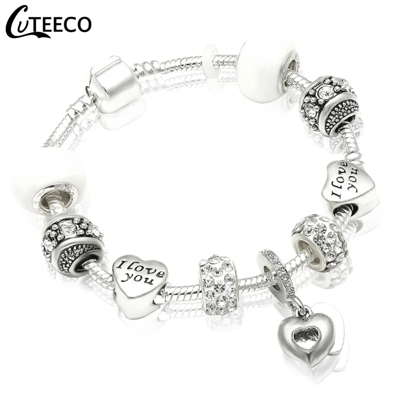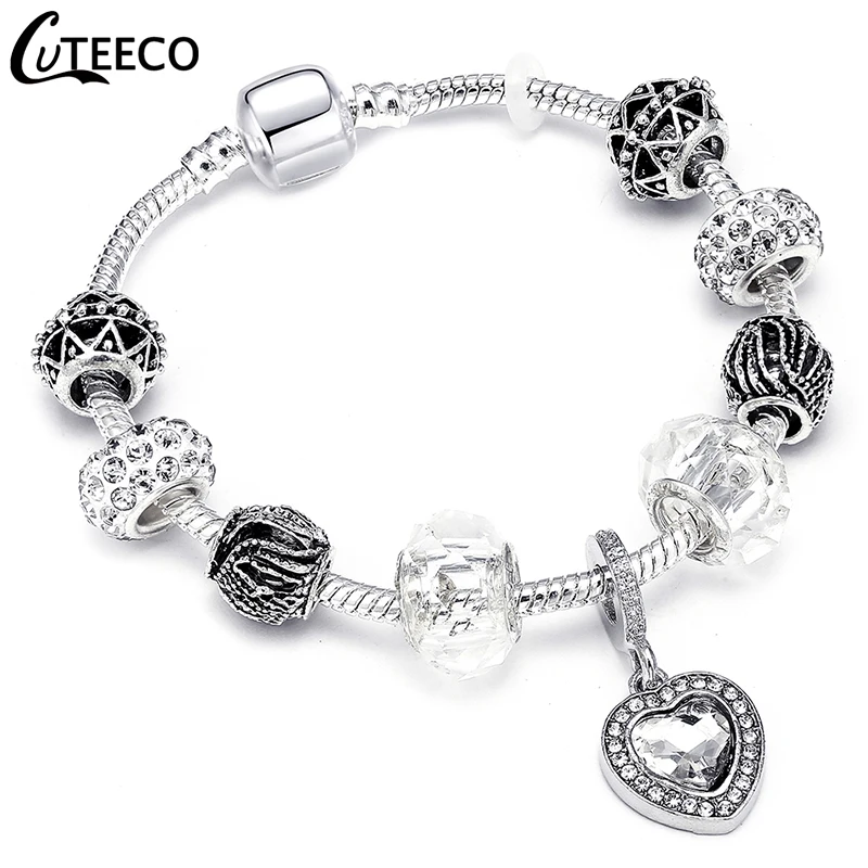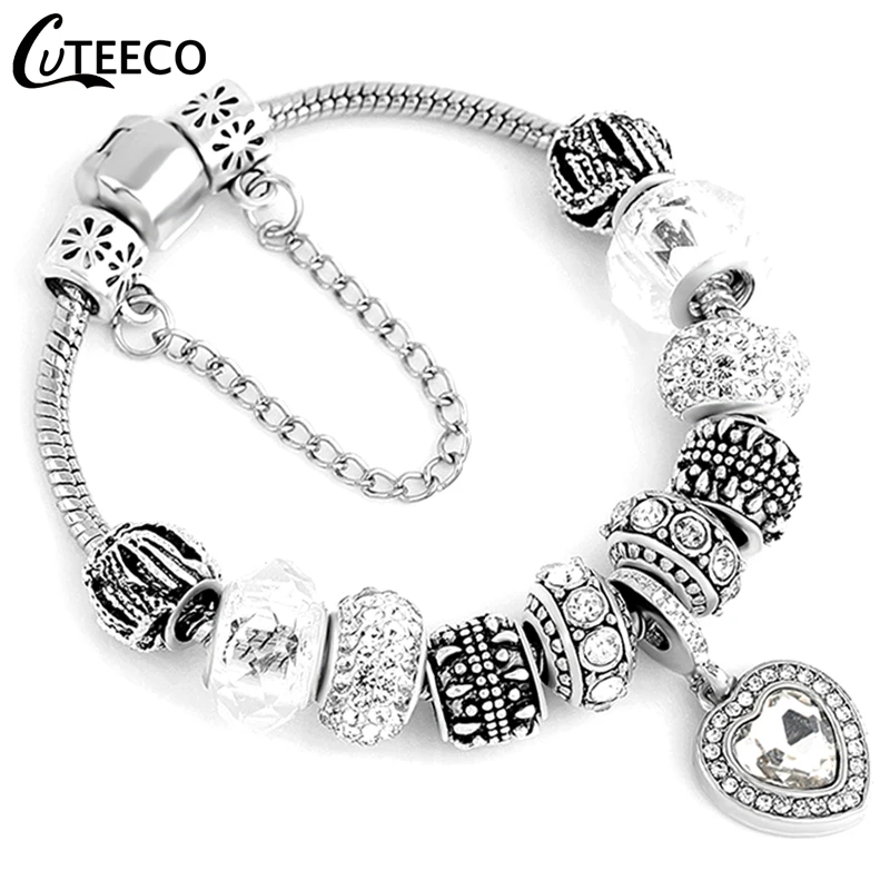 Роскошный браслет CUTEECO с подвеской в виде сердца с кристаллами для женщин, классический браслет, Модная бижутерия, подарок, женский браслет