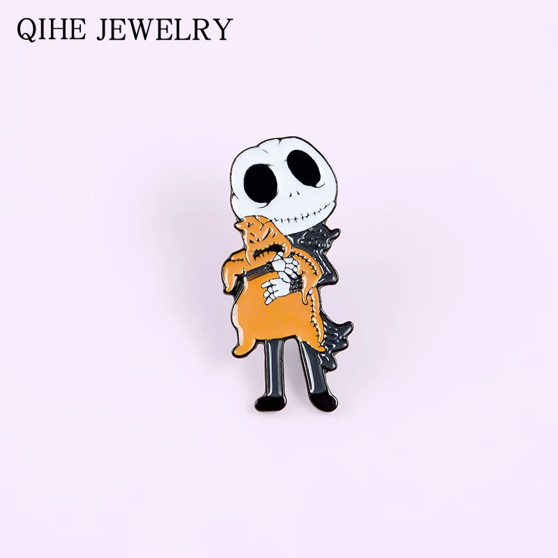 Значок на булавке с эмалью Jack Skellington Oogie Boogie, в готическом стиле, для мужчин и женщин, на Хэллоуин, модное ювелирное украшение, подарок