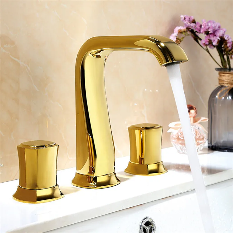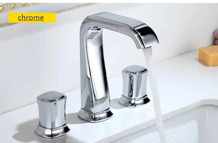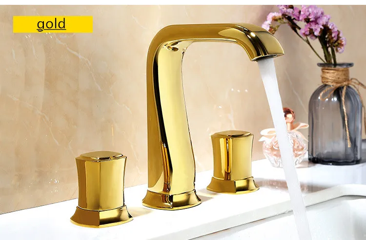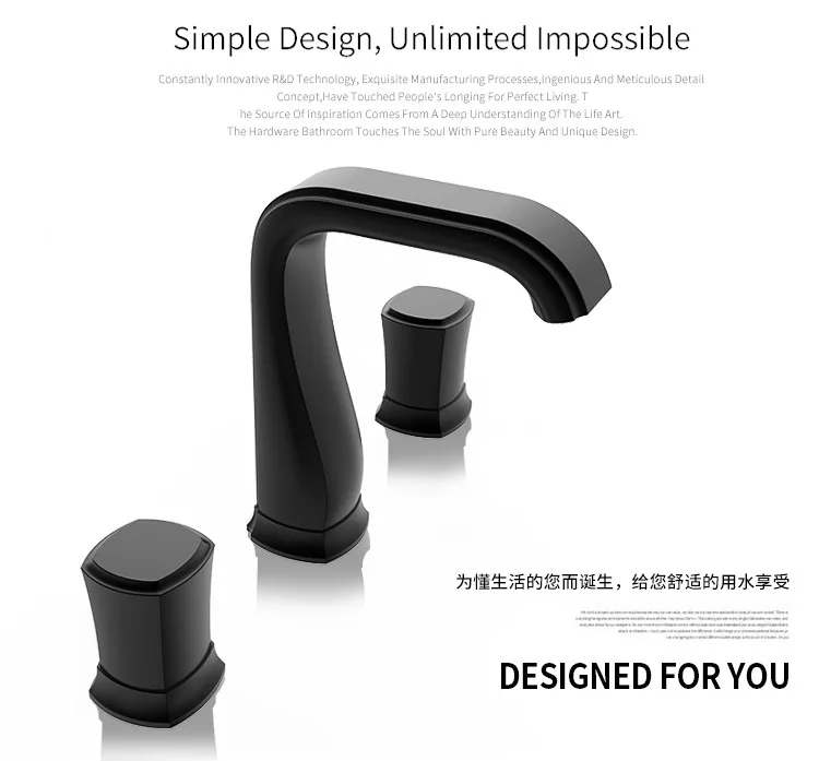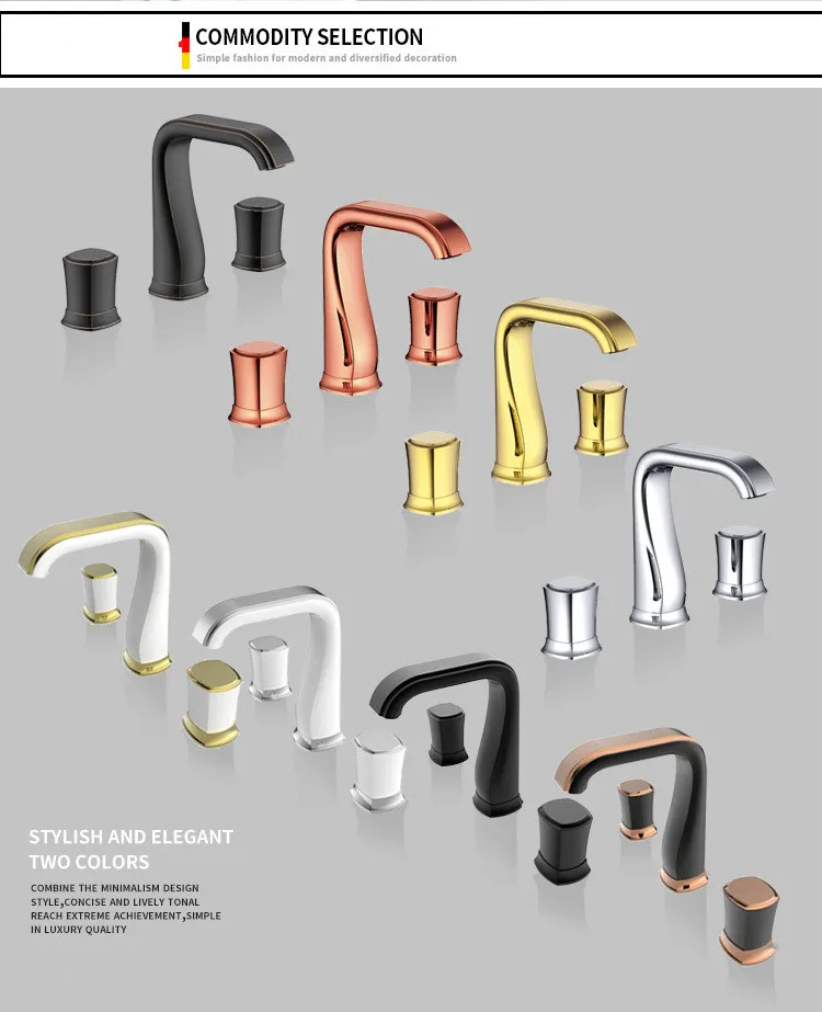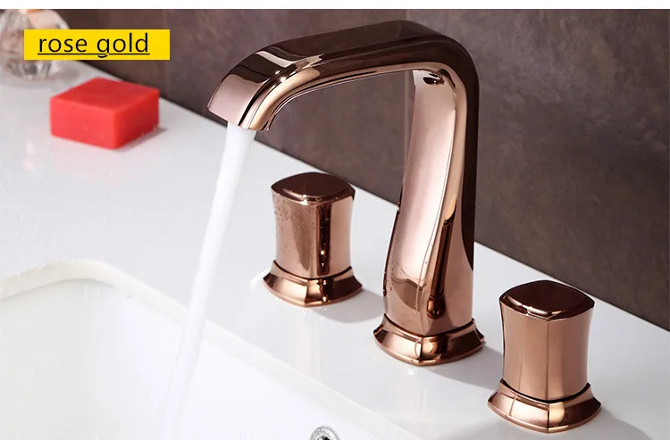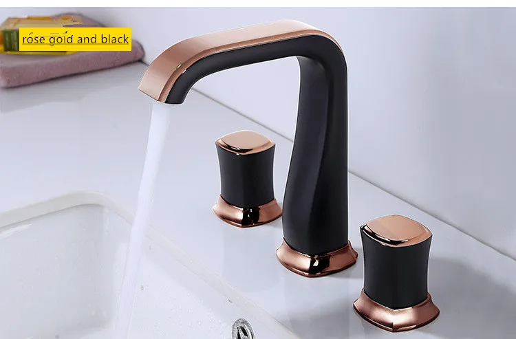 Смеситель Ванная комната Широкое раковина кран цвета розового золота Черный Ванная Комната Раковина Нажмите три отверстия 8 дюймов бассейна кран