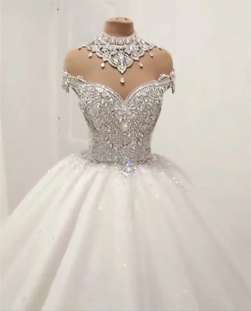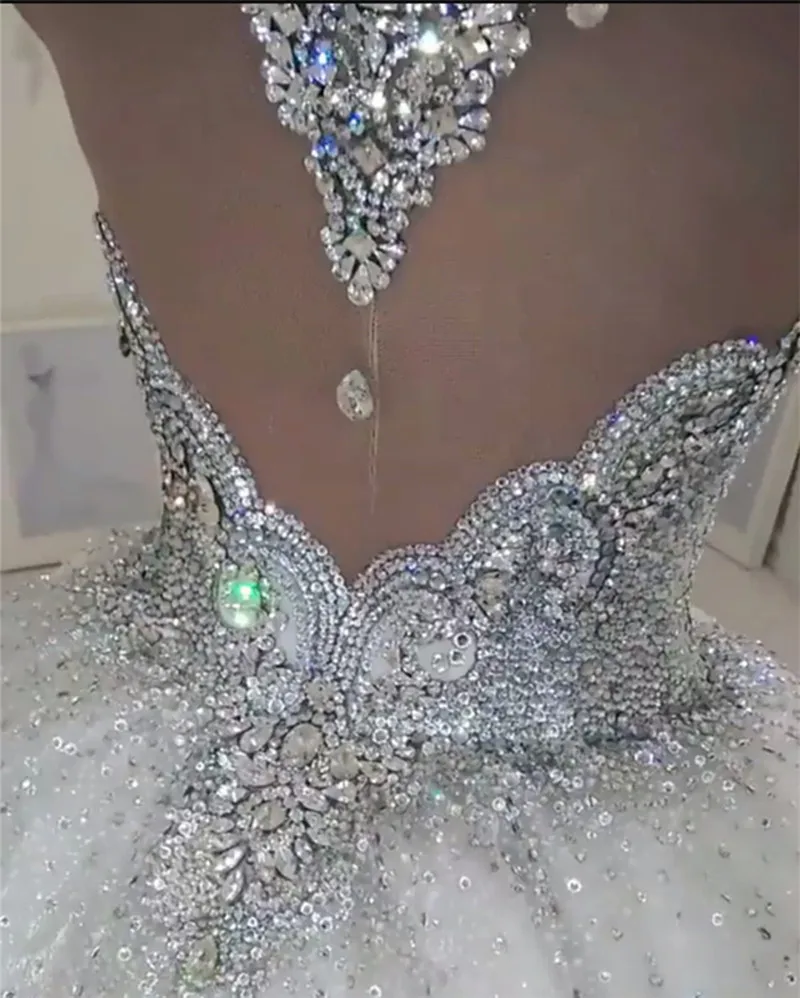 Роскошные свадебные платья Дубай 2022, Пышные свадебные платья с кристаллами и бусинами, винтажные Свадебные платья с вырезом на спине, свадебное платье