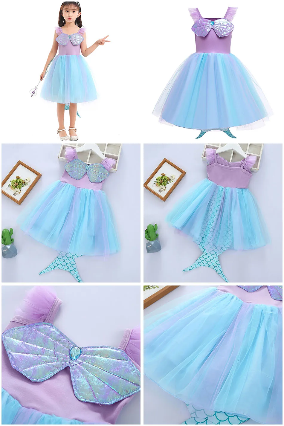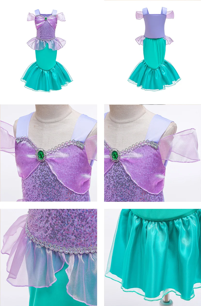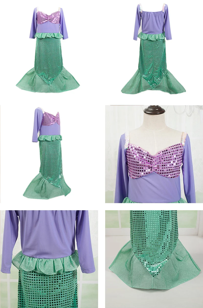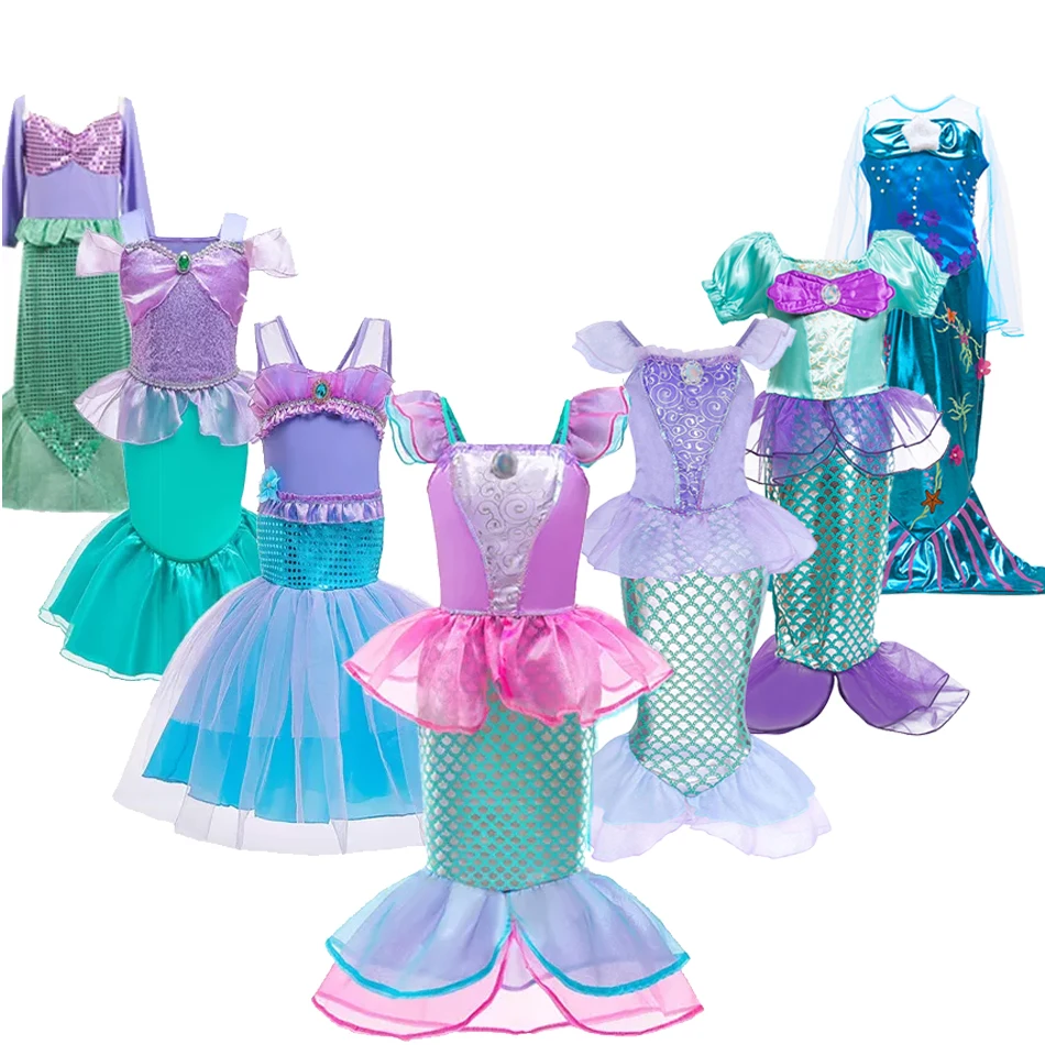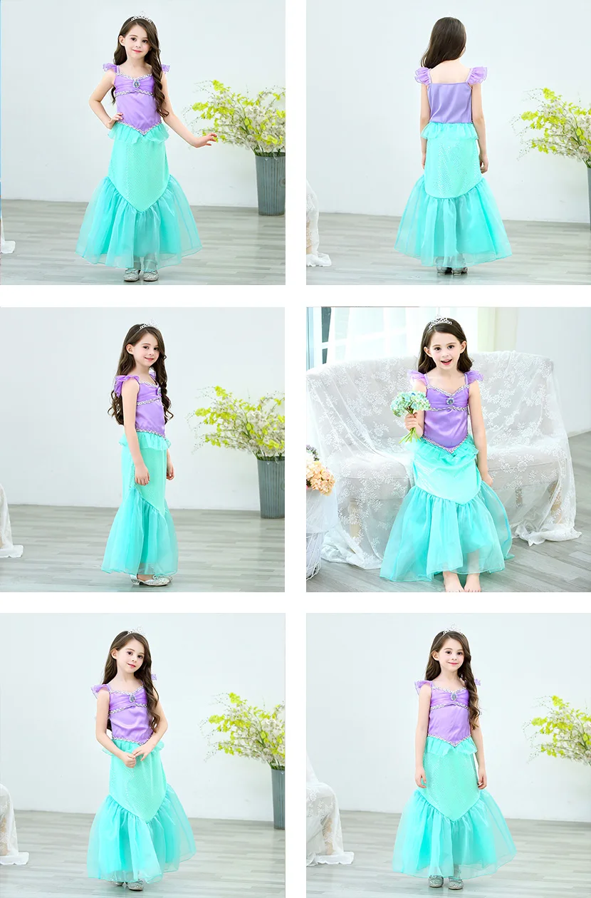 Детское платье русалки, платье Ариэль для маленьких девочек, Детский костюм принцессы для косплея, костюм для девочек на день рождения, Рождественский Костюм
