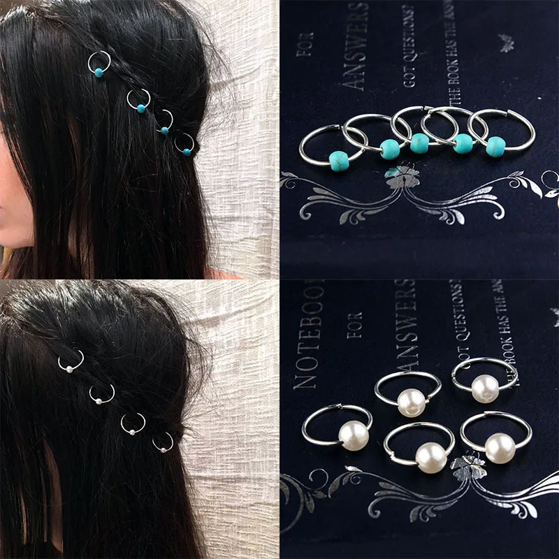 Кольцо для волос с жемчугом, 5 шт.компл., из натурального дерева