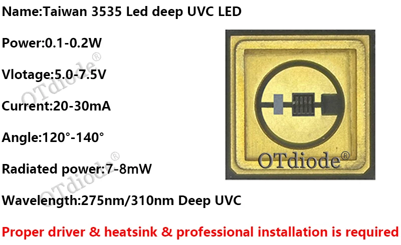 Светодиодный УФ-стерилизатор UVC, 3535, 0,1 Вт, нм, нм, 5-7 в, с ме...