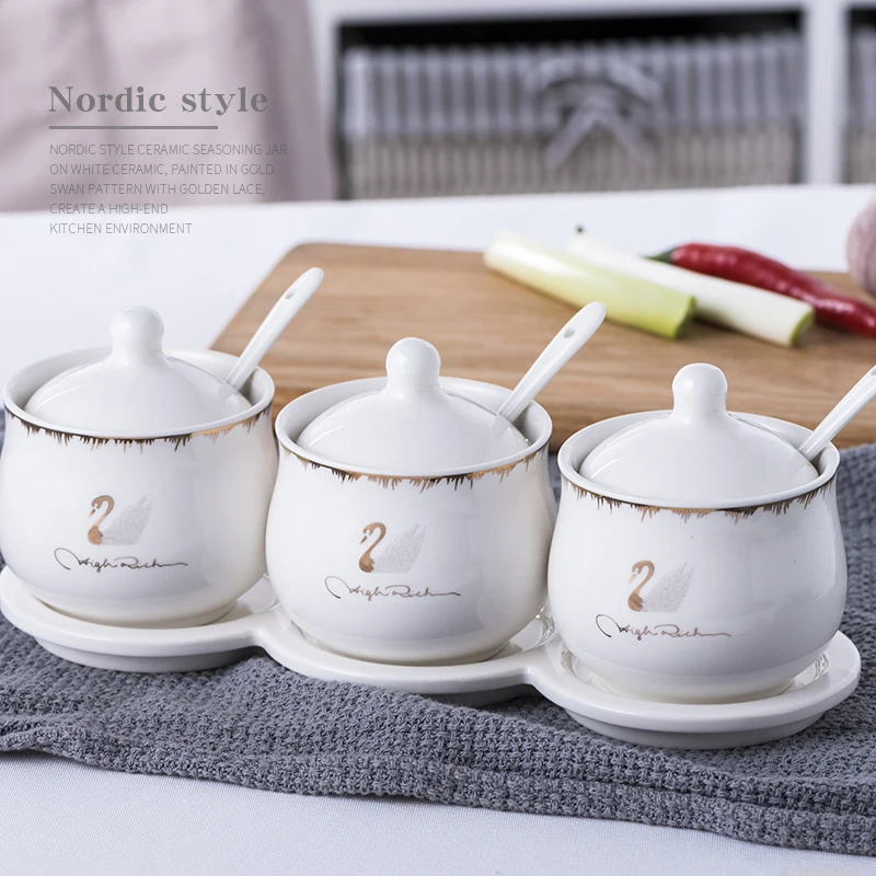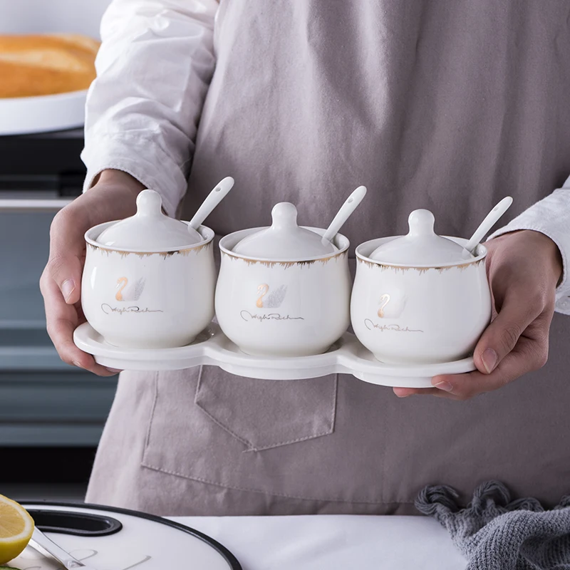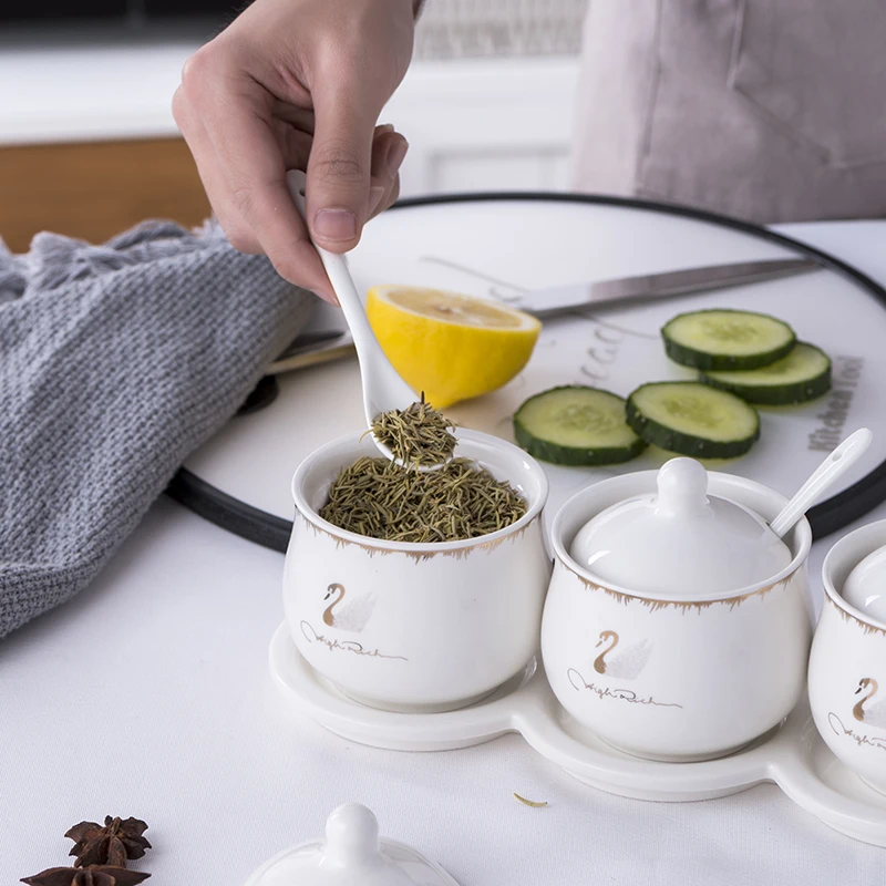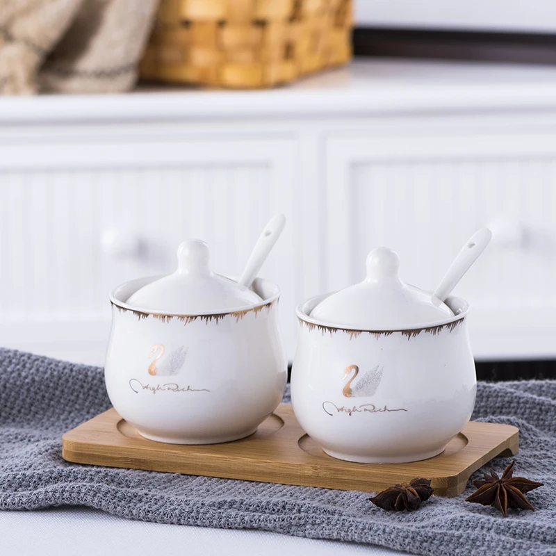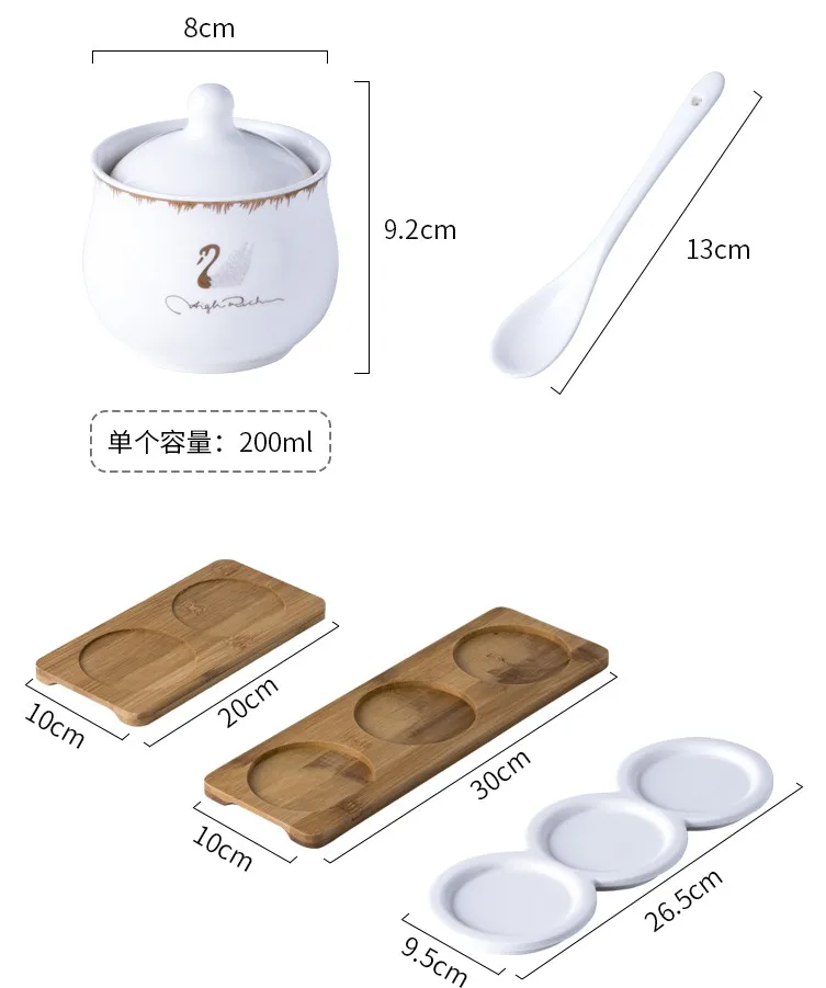 Набор керамических коробок для специй Набор банок для приправ, кухонные принадлежности, бамбуковый деревянный поднос для соли и приправ