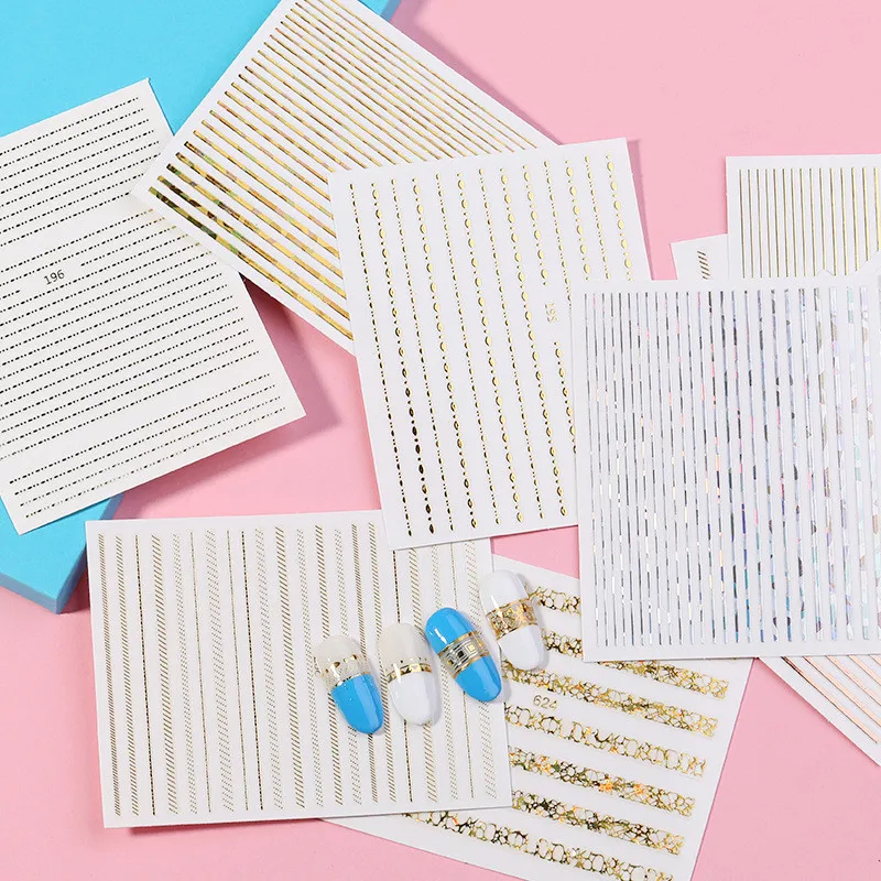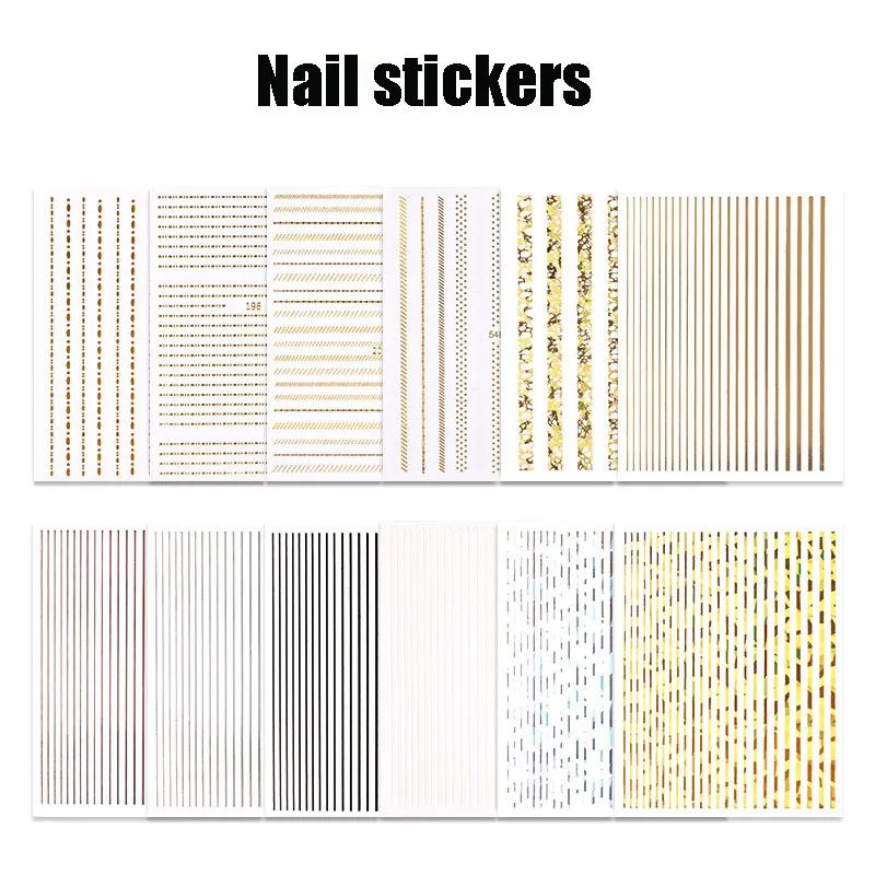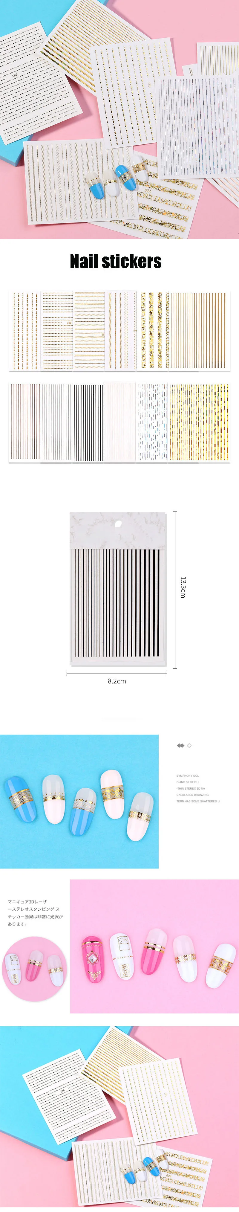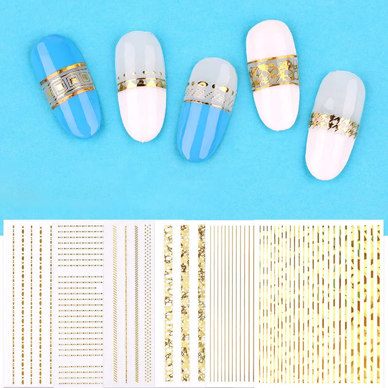 Наклейки золотого и серебряного цвета для ногтей, лазерные прямые изогнутые гибкие вкладыши, 3D полоса, лента, геометрический дизайн, сделай сам, инструменты для украшения ногтей