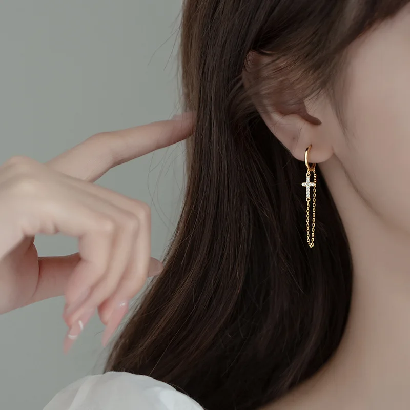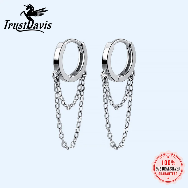 Trustdavis минималистичные серьги-Клипсы из серебра 925 пробы с двойным слоем цепи для женщин Свадебные украшения подарок DA544